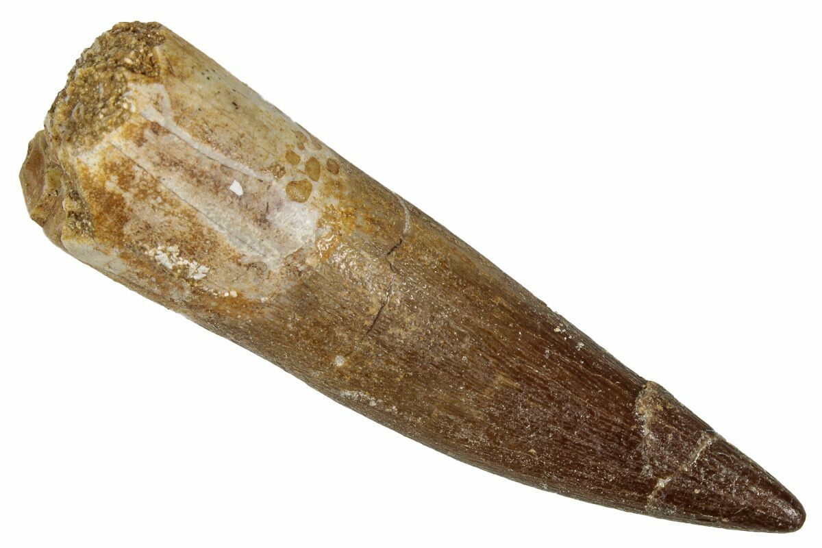 This is a 2.17" tooth from the Cretaceous marine reptile Zarafasaura oceanis, a long-necked plesiosaur known from the phosphate-rich Oulad Abdoun Basin of Morocco. The enamel displays nice preservation and natural coloration.