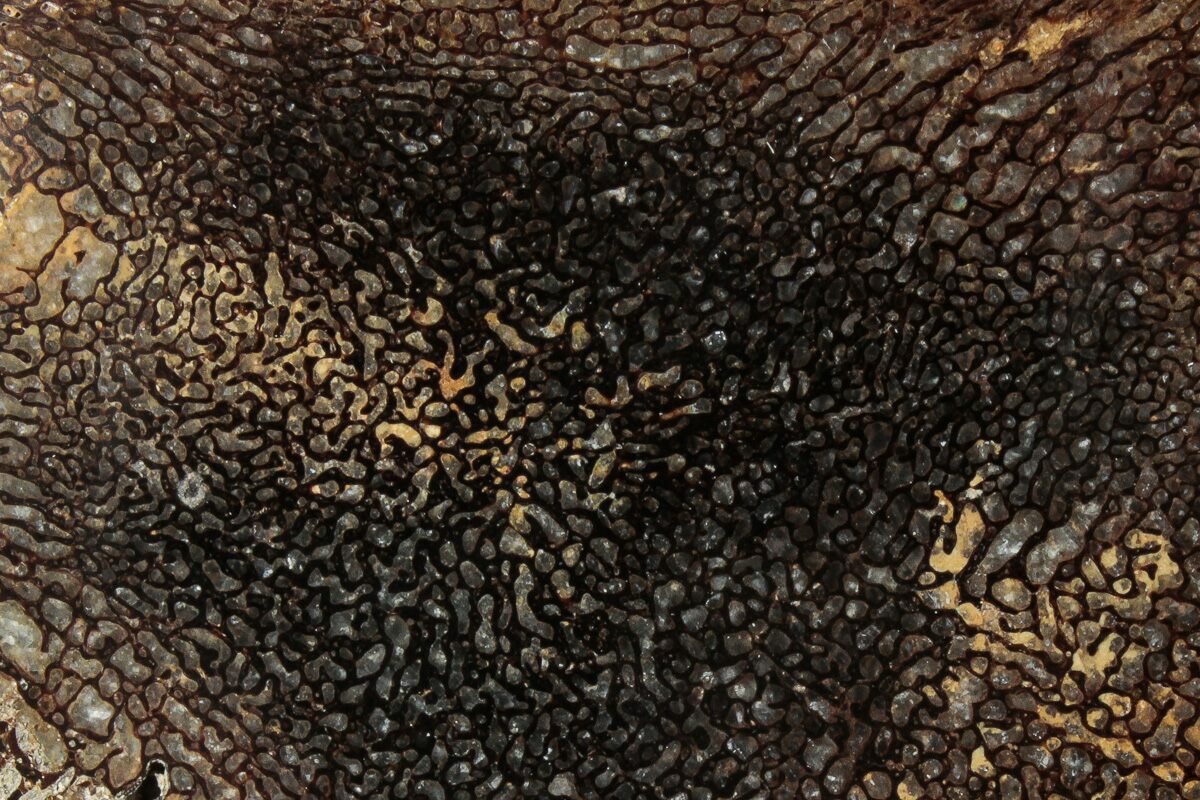 The vertebra has been cut in half and polished to a glossy finish to reveal the intricate, mineral replaced bone cells. Comes with an acrylic display stand. Only the pictured half of the vertebra is included.