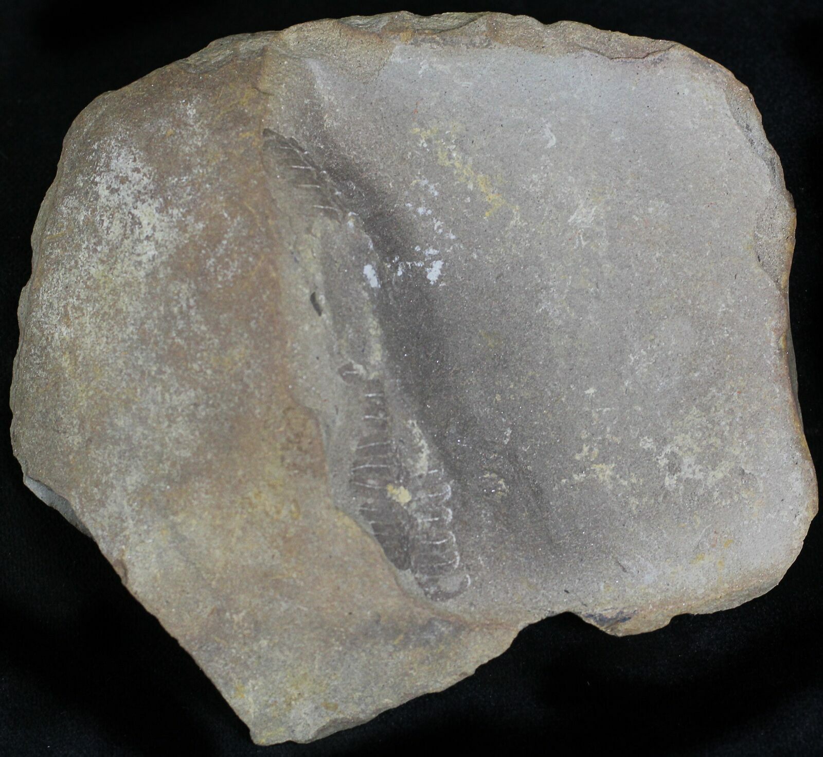 This is a nicely defined fossil front of the fern, Pecopteris sp. preserved inside a ironstone nodule that has been split open. It comes from the famous Mazon Creek Lagerstätte. These ironstone nodules have been collected for decades from the spoil heaps of abandoned coil mines near Coal City, Illinois.