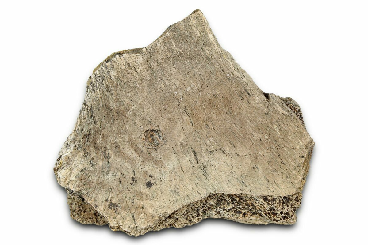 This is a 2.2" wide, fossil Triceratops horridus frill section, collected from the Hell Creek Formation in Montana.