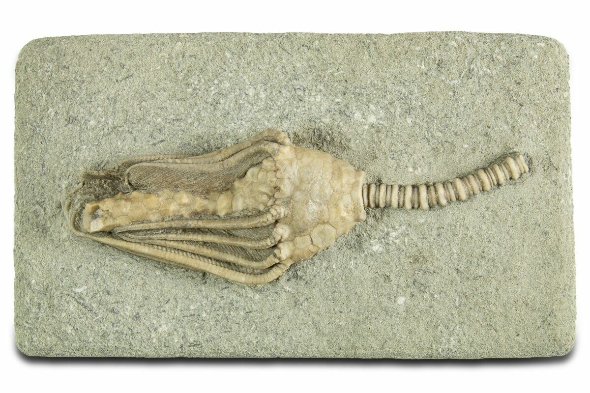 Crinoids from the Ramp Creek Limestone were likely buried in sediment from nearby deltas during storms. The resulting siltstone deposits are soft enough that fossils can be extracted in exquisite, three-dimensional relief.