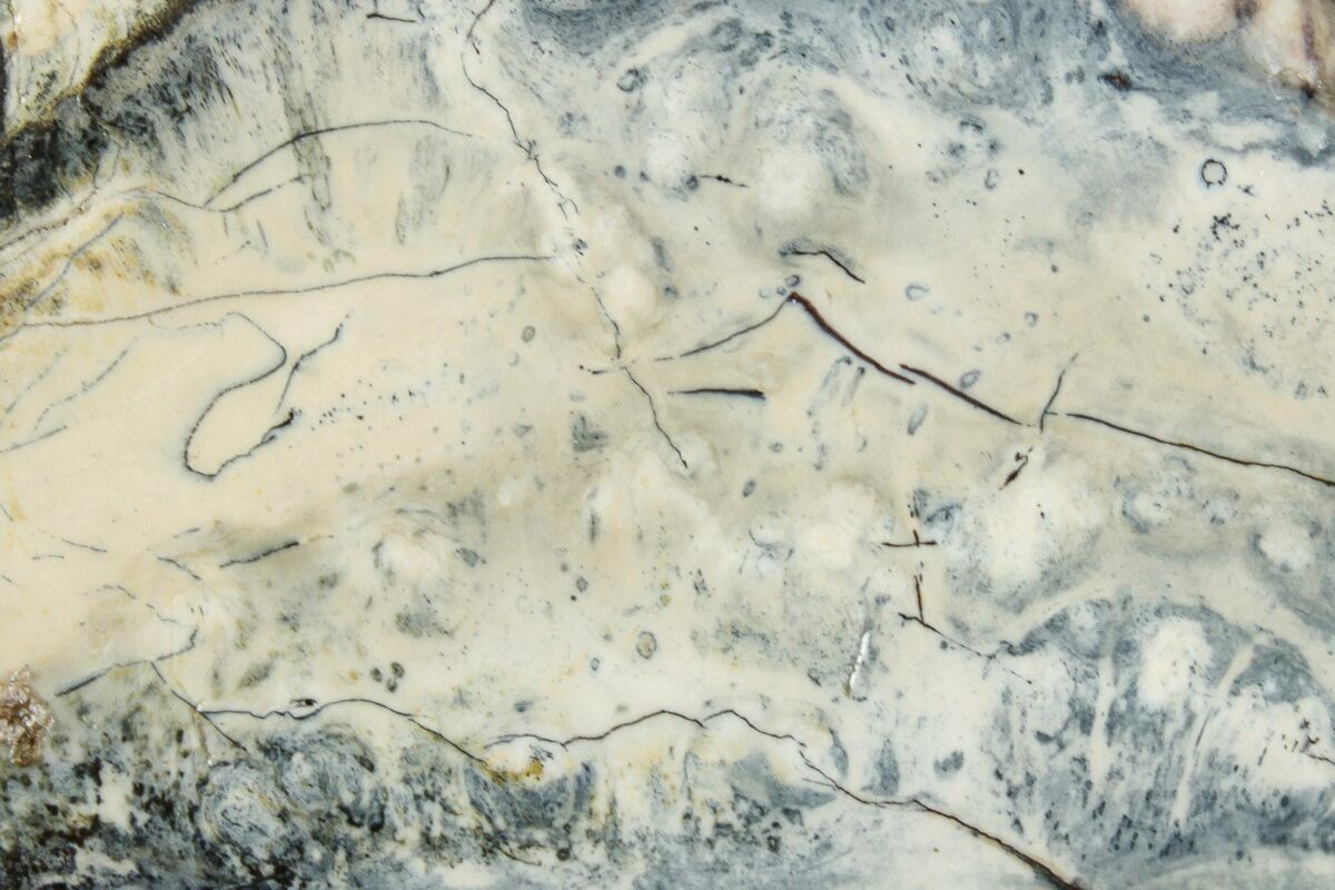 This is an interesting cross-sectional slice of a Columbian mammoth (Mammuthus columbi) molar collected from a river in South Carolina. While complete mammoth molars in these rivers are rare, finding partial or fragmented molars is not uncommon. These partial mammoth molars are collected by divers who primarily look for Megalodon teeth on the river bottom. Many of these fragments are sliced just like this specimen, revealing unique new patterns within the enamel.