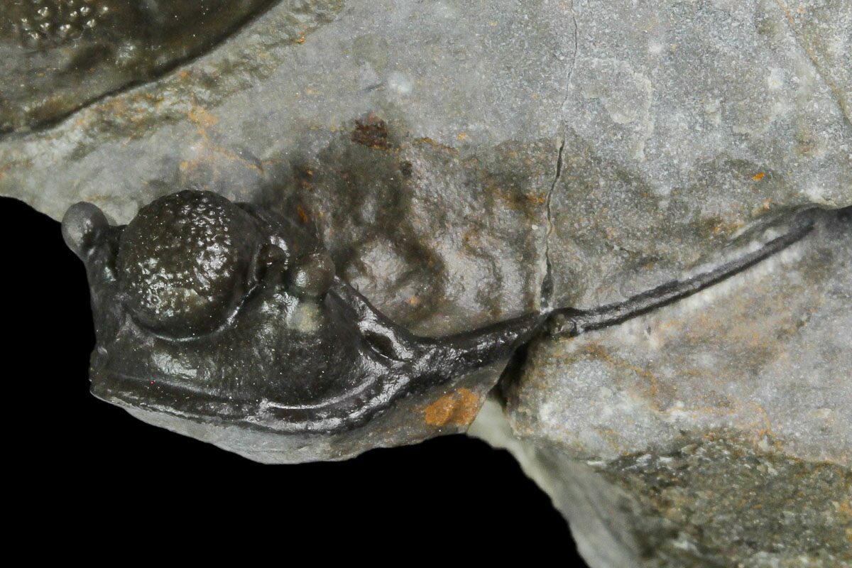 It is laid out perfectly prone with a cyphaspis right next to it's head. The preparation was done by one of the best preparitors in the world and the results speak for themselves. This is as good as it gets.