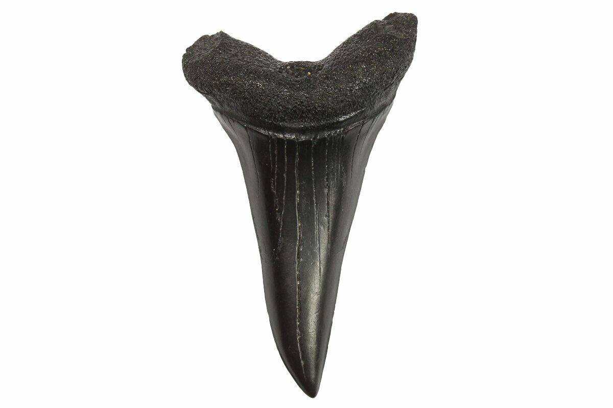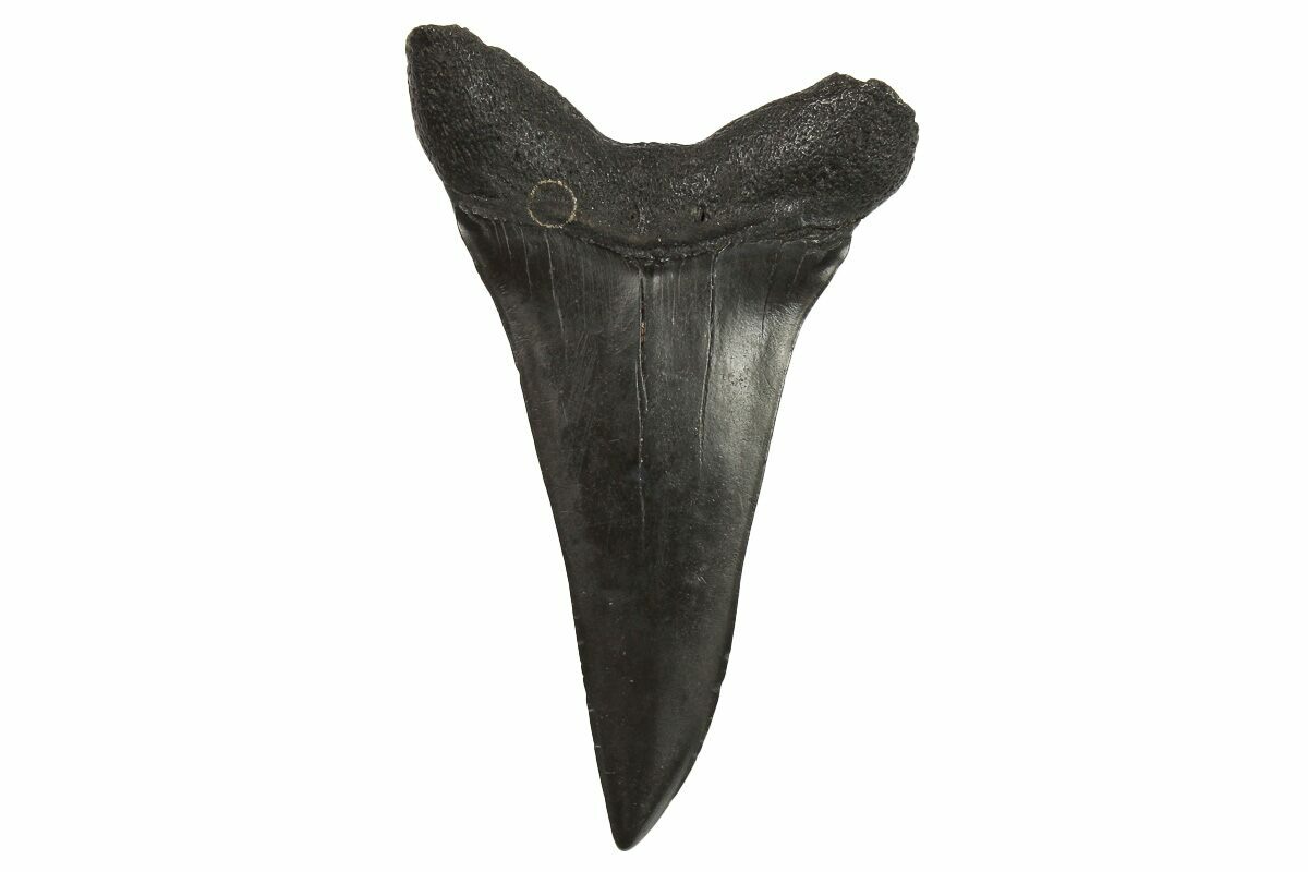 This is a 2.27" long fossil mako (Isurus sp.?) shark tooth. It comes from the Miocene-aged Hawthorn Formation in South Carolina.