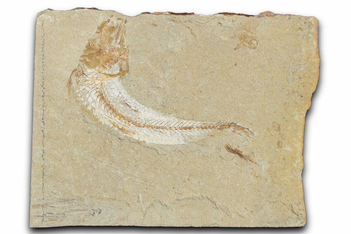 This is a 2.3" fossil fish from the famous marine lagerstätte of Hakel, Lebanon. It is Upper Cretaceous in age or approximately 94 million years old. Numerous species have been identified out of the region, making identification difficult.