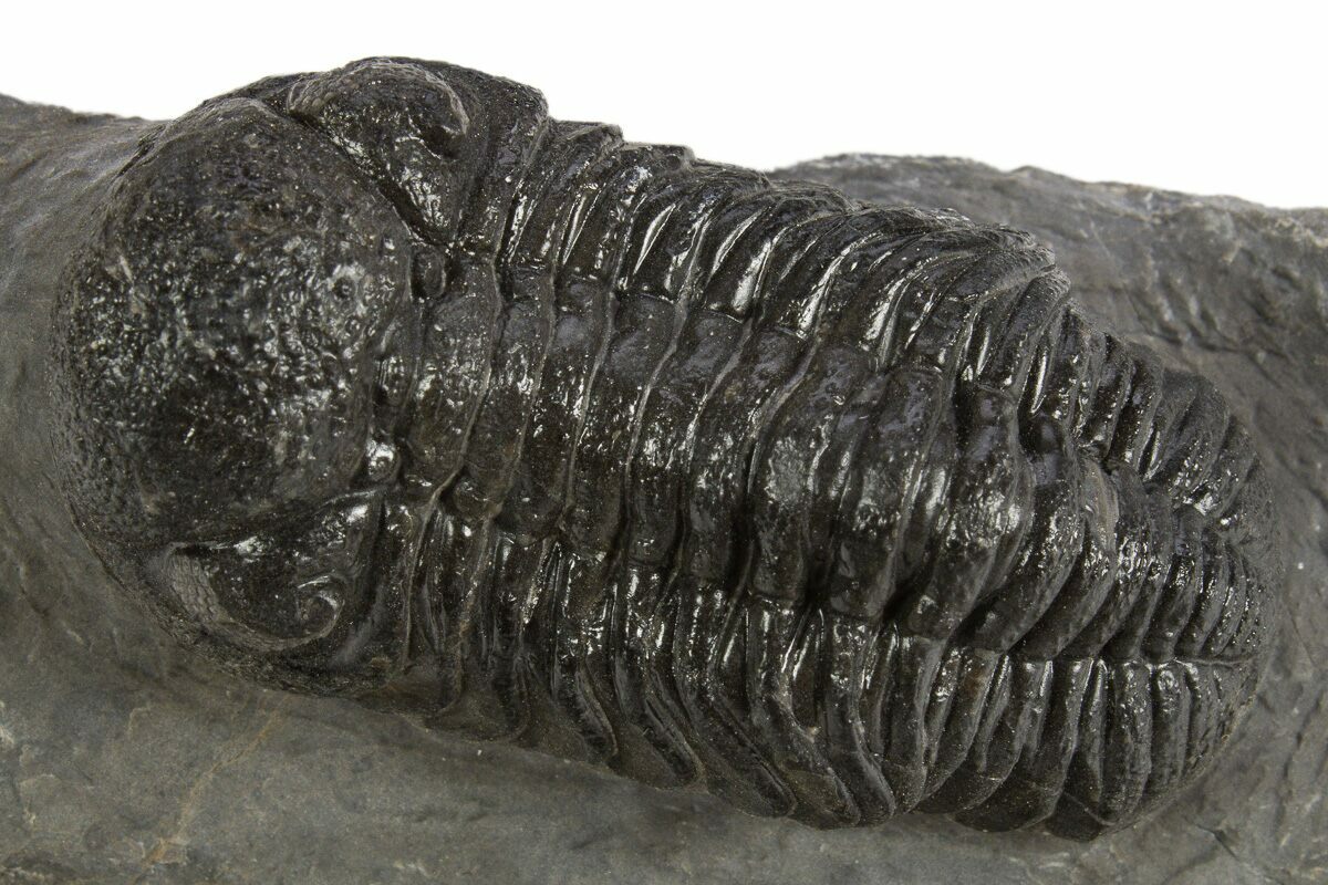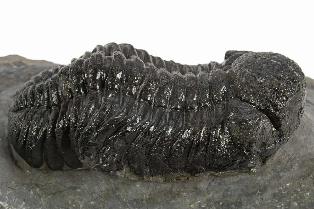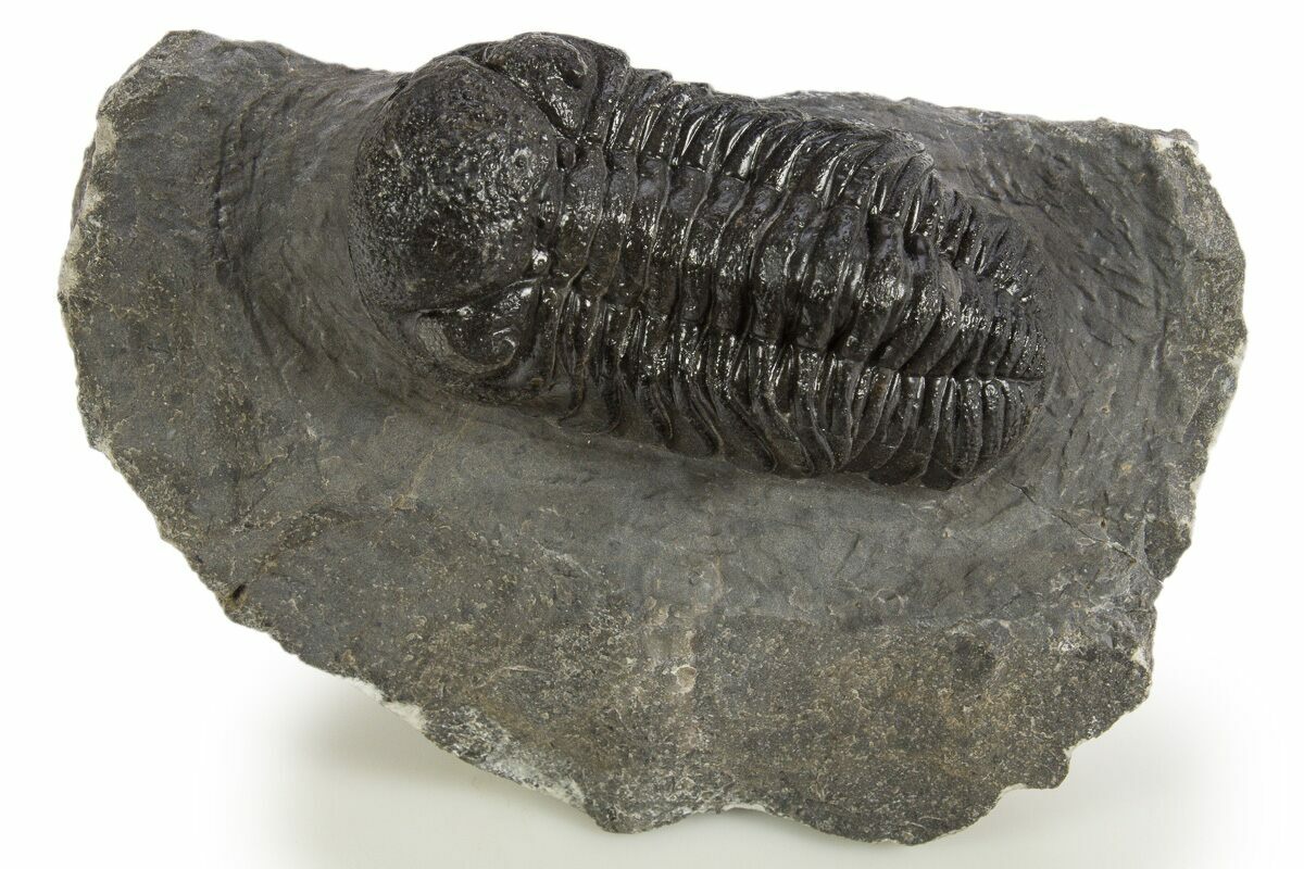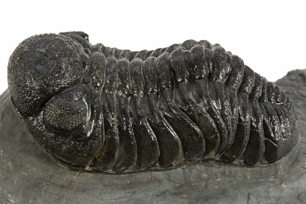 This is a detailed, 2.3" long Morocops trilobite from Morocco. There is good eye facet preservation in both eyes. It has about 1% shell restoration in total.
