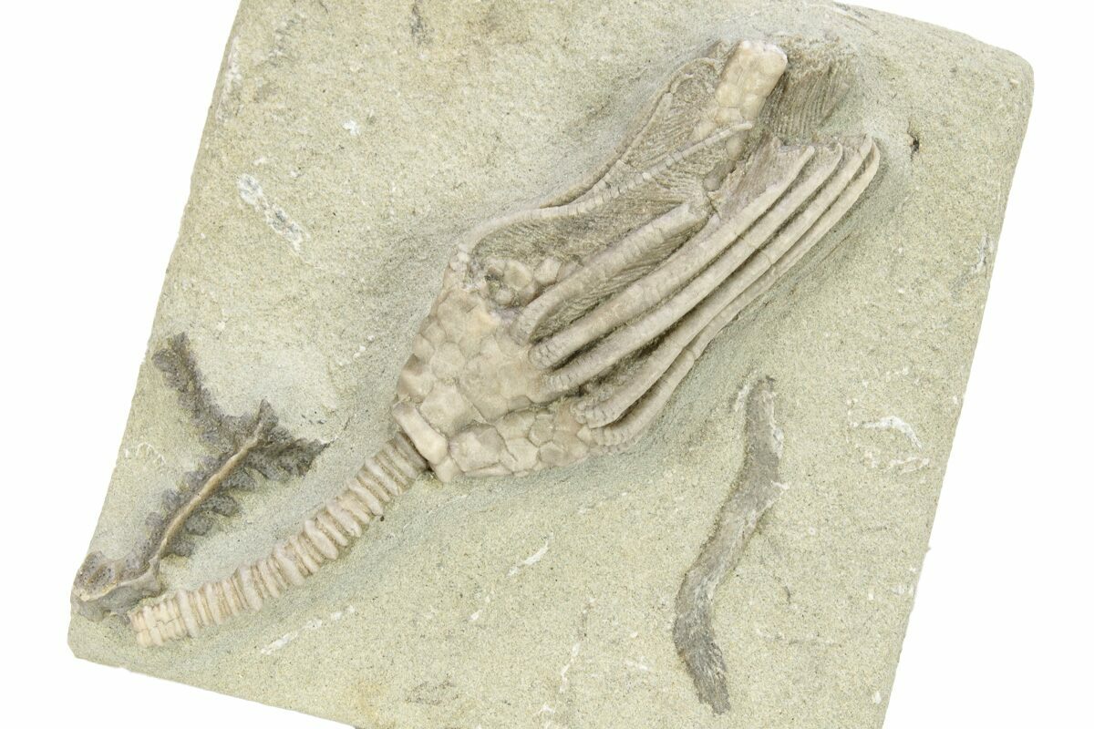 Crinoids from the Ramp Creek Limestone were likely buried in sediment from nearby deltas during storms. The resulting siltstone deposits are soft enough that fossils can be extracted in exquisite, three-dimensional relief.