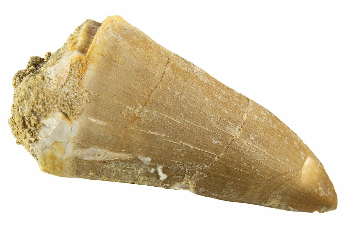 This is a beautiful, 2.3" mosasaur (Mosasaurus beaugei) tooth from the Late Cretaceous, phosphate deposits in the Oulad Abdoun Basin of Morocco.