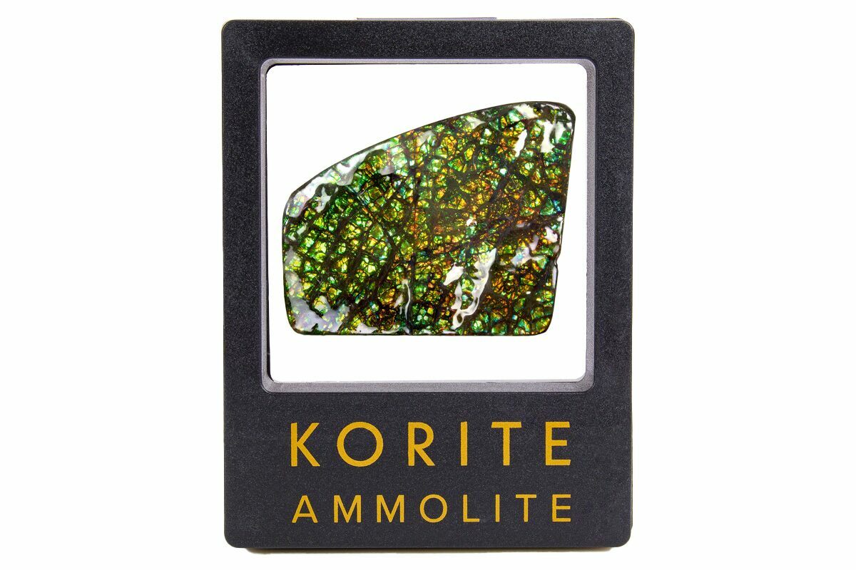 Ammolite is an opal-like gemstone found primarily in Alberta, Canada. It is a kind of fossilized shell from ammonites, which in turn are composed primarily of aragonite, the same mineral contained in nacre (mother-of-pearl). The shell's microstructures are often preserved. In 1981, ammolite was given official gemstone status by the World Jewellery Confederation (CIBJO).