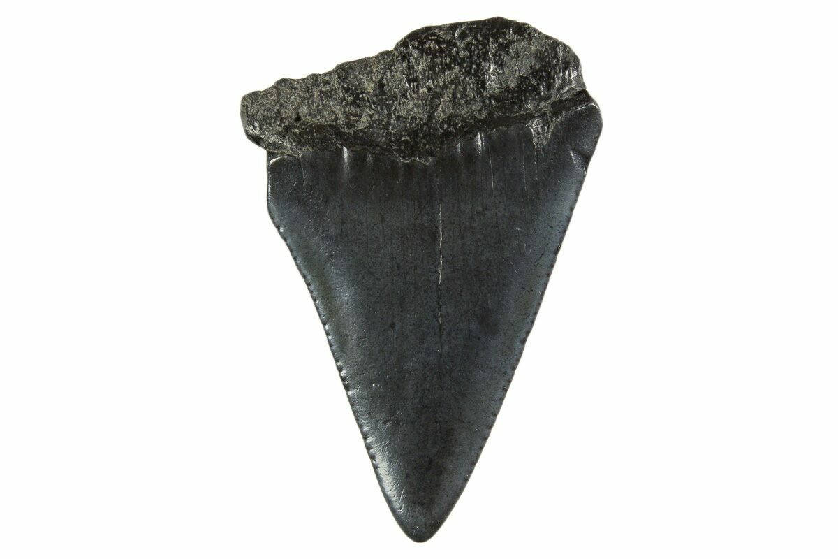 This is a 2.31" long fossil great white shark (Carcharodon carcharias) tooth. It comes from the Hawthorn Formation in South Carolina which is Miocene in age. These fossil great white teeth are much rarer than the megalodon teeth which they are associated with.