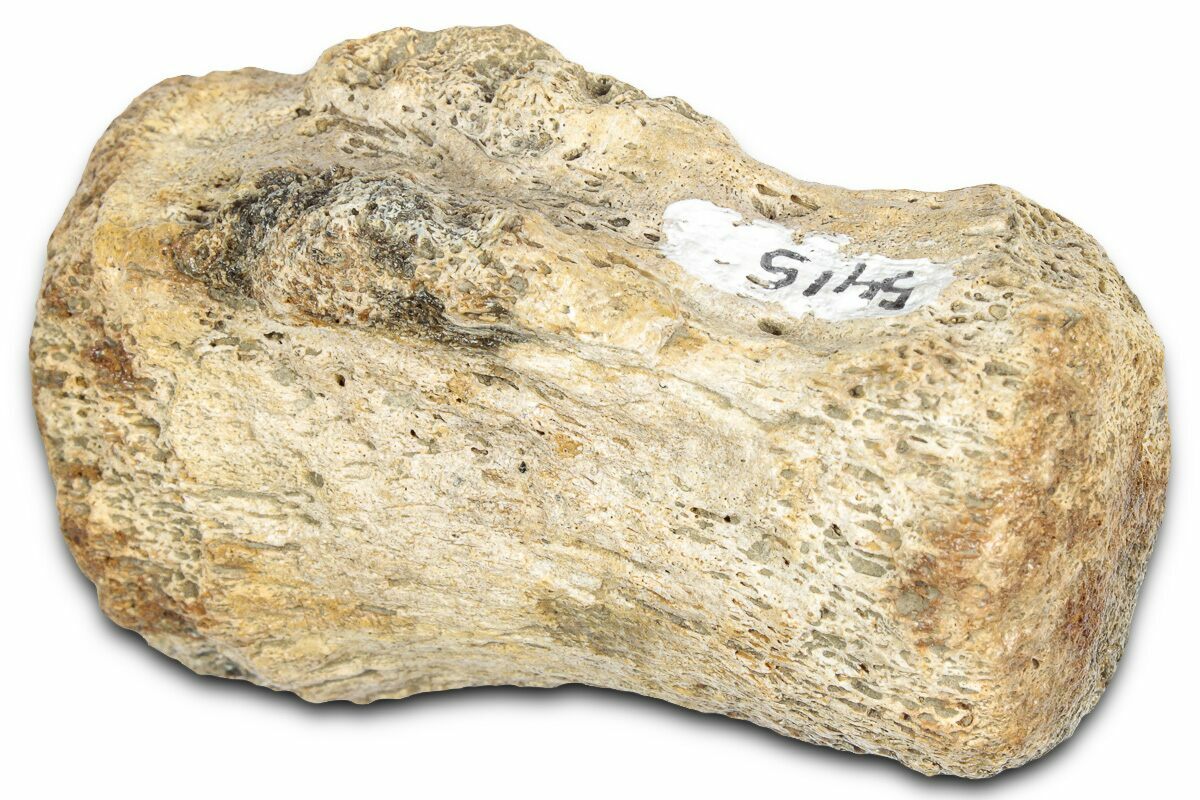 Isolated vertebra from Thescelosaurus and Pachycephalosaurus can be difficult to distinguish between without complete processes, however the lack of a horizontal ridge along the sides of the vertebra, along with the general shape indicates this is likely from Pachycephalosaurus.