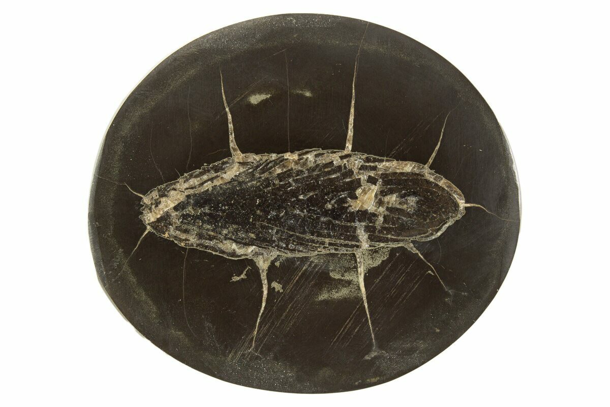 This is a rather unusual fossil, it is a coprolite (fossilized poop) from a large fish. These coprolites are Carboniferous (350 million years old) and are preserved within pyritized nodules. It possibly came from the prehistoric lobe-finned fish, Megalichthys, however identifying fossilized poop down to the species level is nearly impossible, therefore we have left the species as unidentified. The coprolite has been cut in half and highly polished. Some of these specimens have been known to show signs of the fishes meal such as fossilized scales when examined closely.