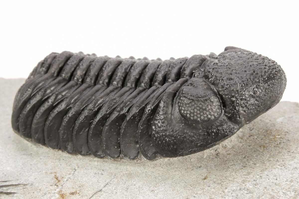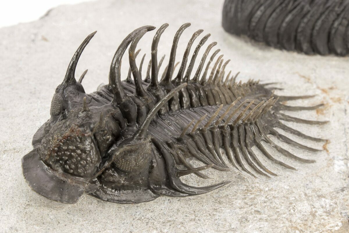 This is a 2.4" long Comura bultyncki trilobite naturally associated with a Morocops. The left side of the Comura has some compression but it has nice preparation.