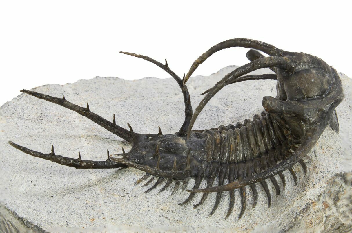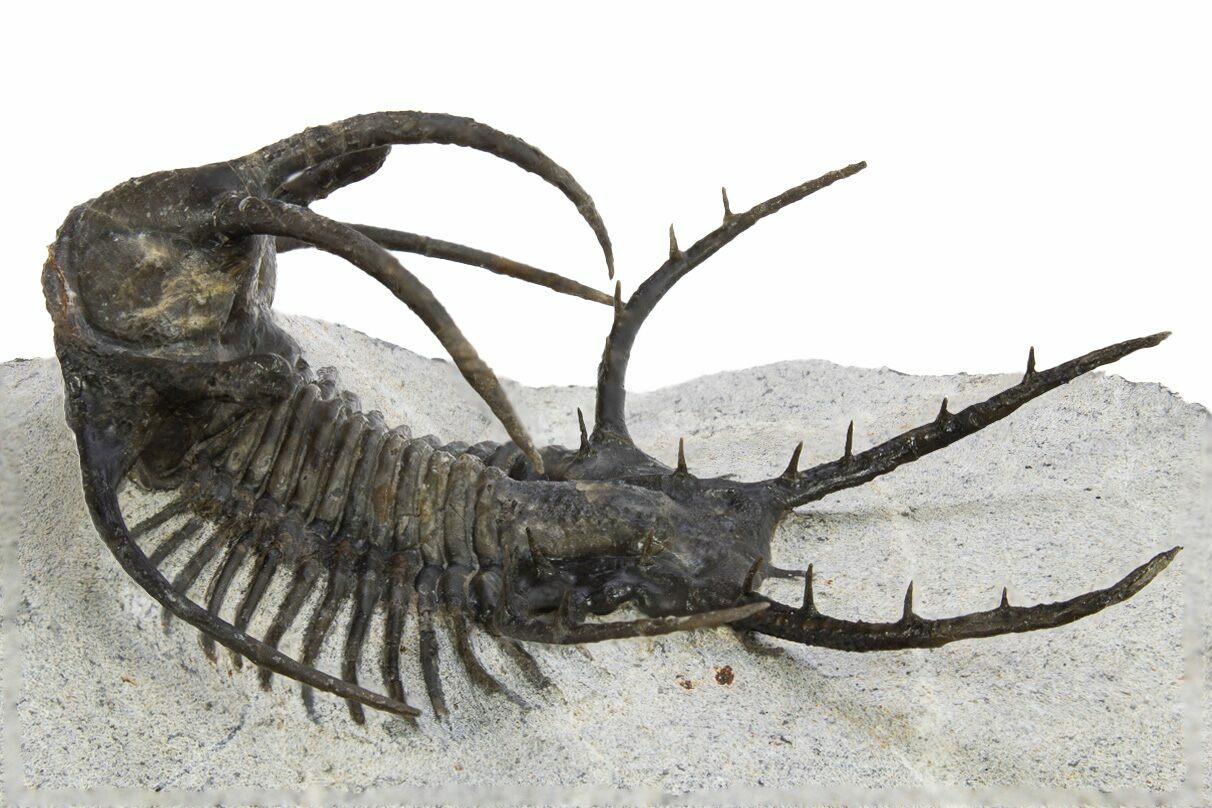 Now this is one alien-looking trilobite; it's almost hard to imagine that it was once alive inhabiting our oceans. It's a Ceratarges koumalii from the Middle Devonian limestone of Morocco. One can imagine that the large spines may have served as defensive protection against fish that had just begun to develop hardened jaws and likely had trilobites on the dinner menu.