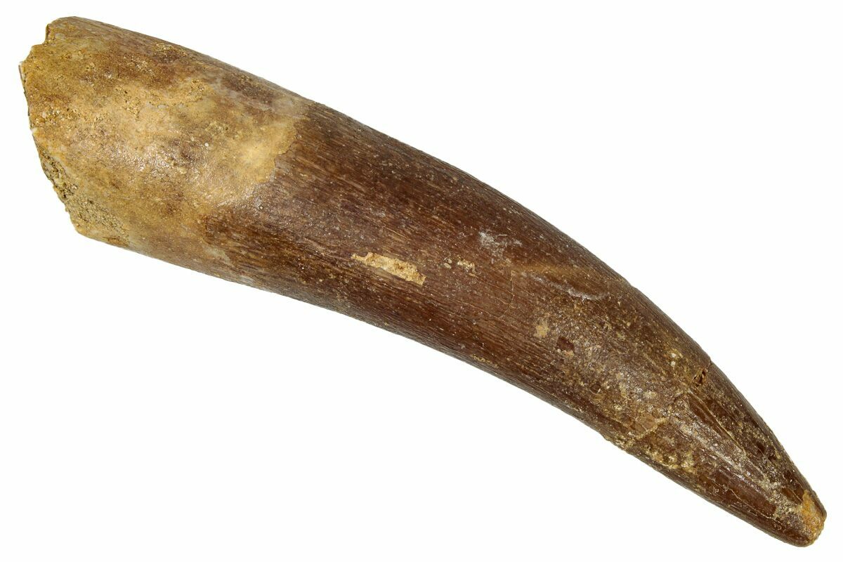 This is a 2.41" tooth from the Cretaceous marine reptile Zarafasaura oceanis, a long-necked plesiosaur known from the phosphate-rich Oulad Abdoun Basin of Morocco. The enamel displays nice preservation and natural coloration. It has a few crack repairs which is typical for these teeth as they are typically fractured.
