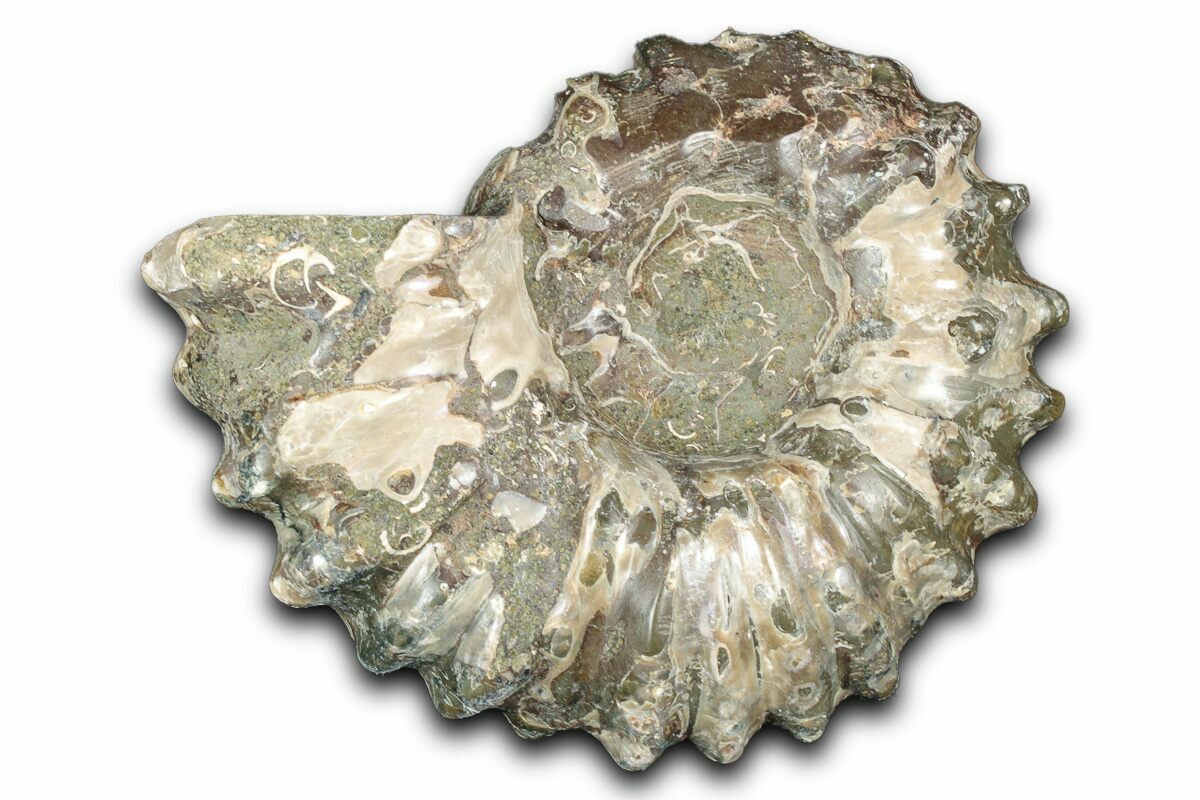 Ammonites were ancient marine cephalopods, similar to today's squids and octopuses, but with a defining feature: their distinctive, tightly coiled spiral shells. These shells, resembling those of modern nautiluses, served as both a protective home and a buoyancy aid, allowing ammonites to navigate the prehistoric seas with ease. First emerging around 240 million years ago in the Triassic Period, ammonites thrived for over 175 million years, adapting through numerous forms and sizes. As predatory creatures, they likely fed on smaller marine organisms, using their tentacles to capture prey. However, their long reign came to an end 65 million years ago at the close of the Cretaceous, coinciding with the mass extinction event that also eliminated the dinosaurs.