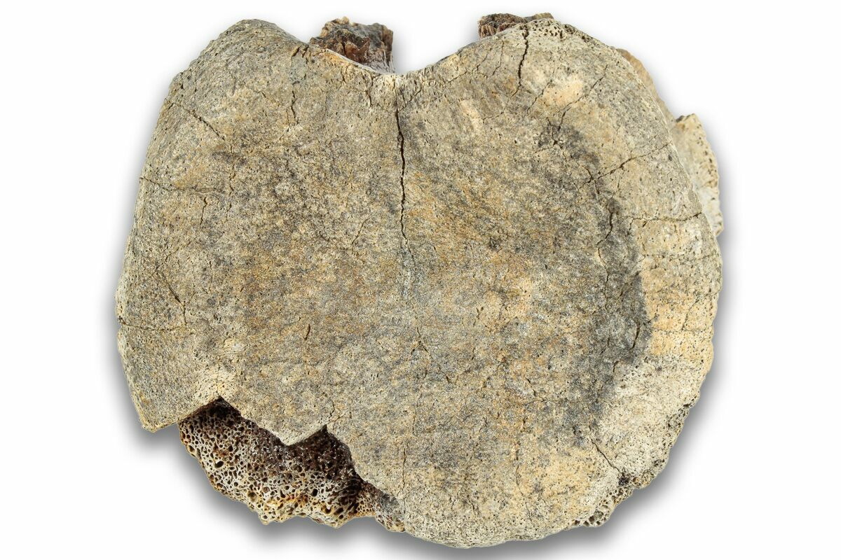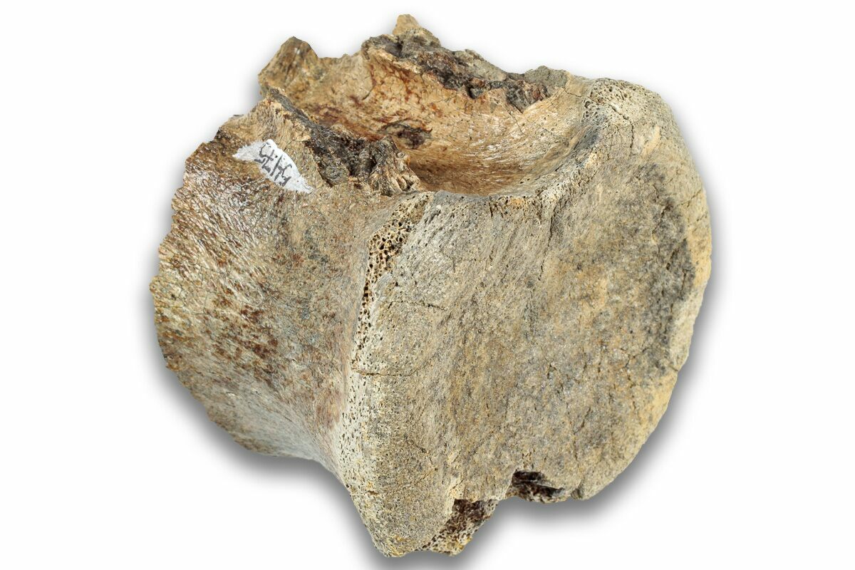 This is a 2.45" wide caudal vertebra centrum from the famous duck-billed dinosaur, Edmontosaurus annectens, collected from a private lease on the Hell Creek Formation in Montana. Portions of the centrum are missing.