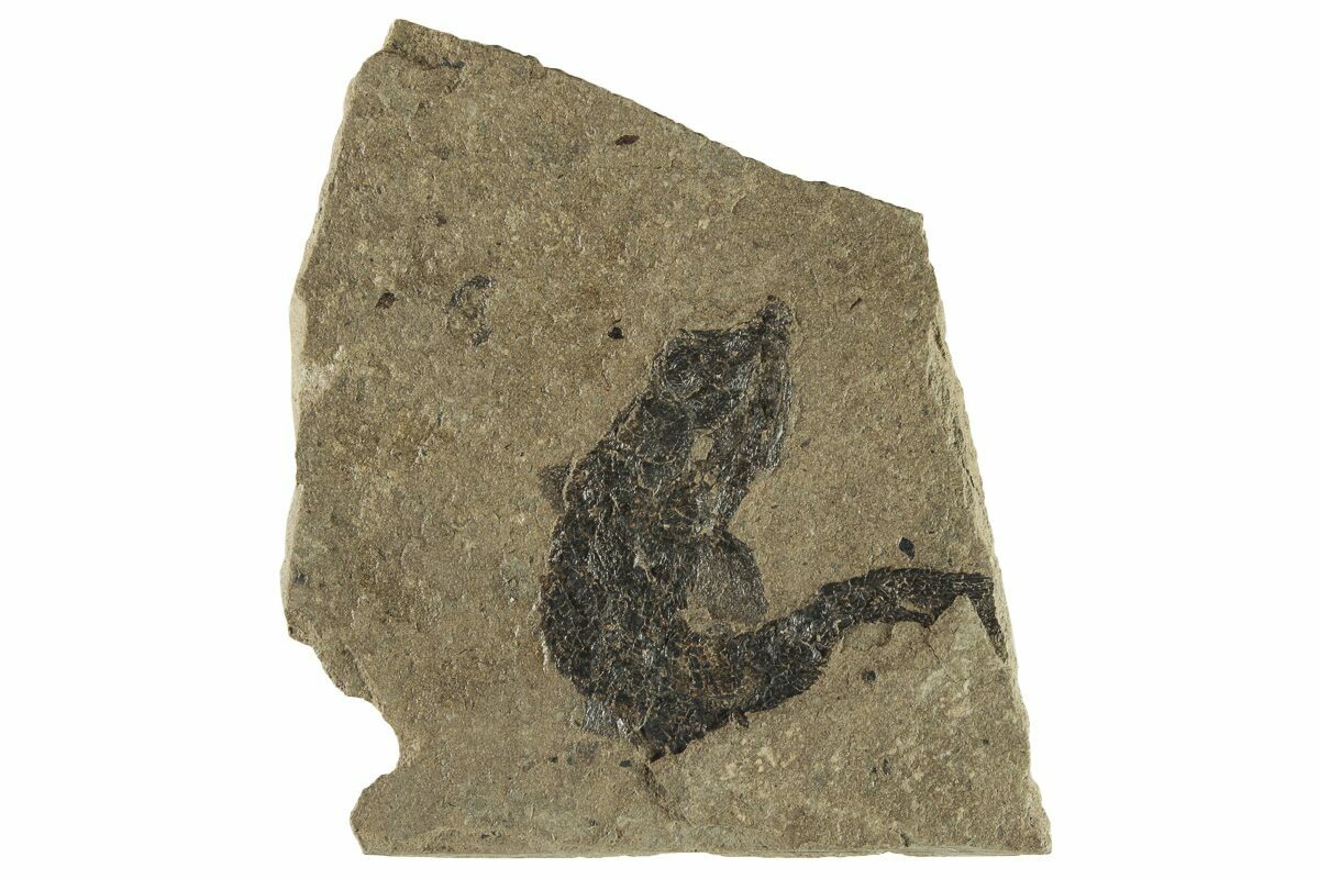 This is an Early Carboniferous, Palaeoniscid (Gyrolepidotus schmidti) fish fossil from Medvedsk, Siberia. It has quite a bit of detail and measures 2.5" long. The paleoniscoids were the first ray-fined fish appearing during the Carboniferous and Permian periods.