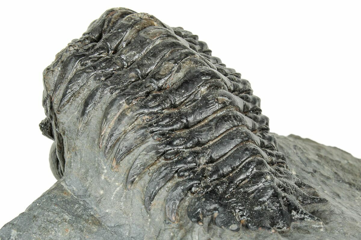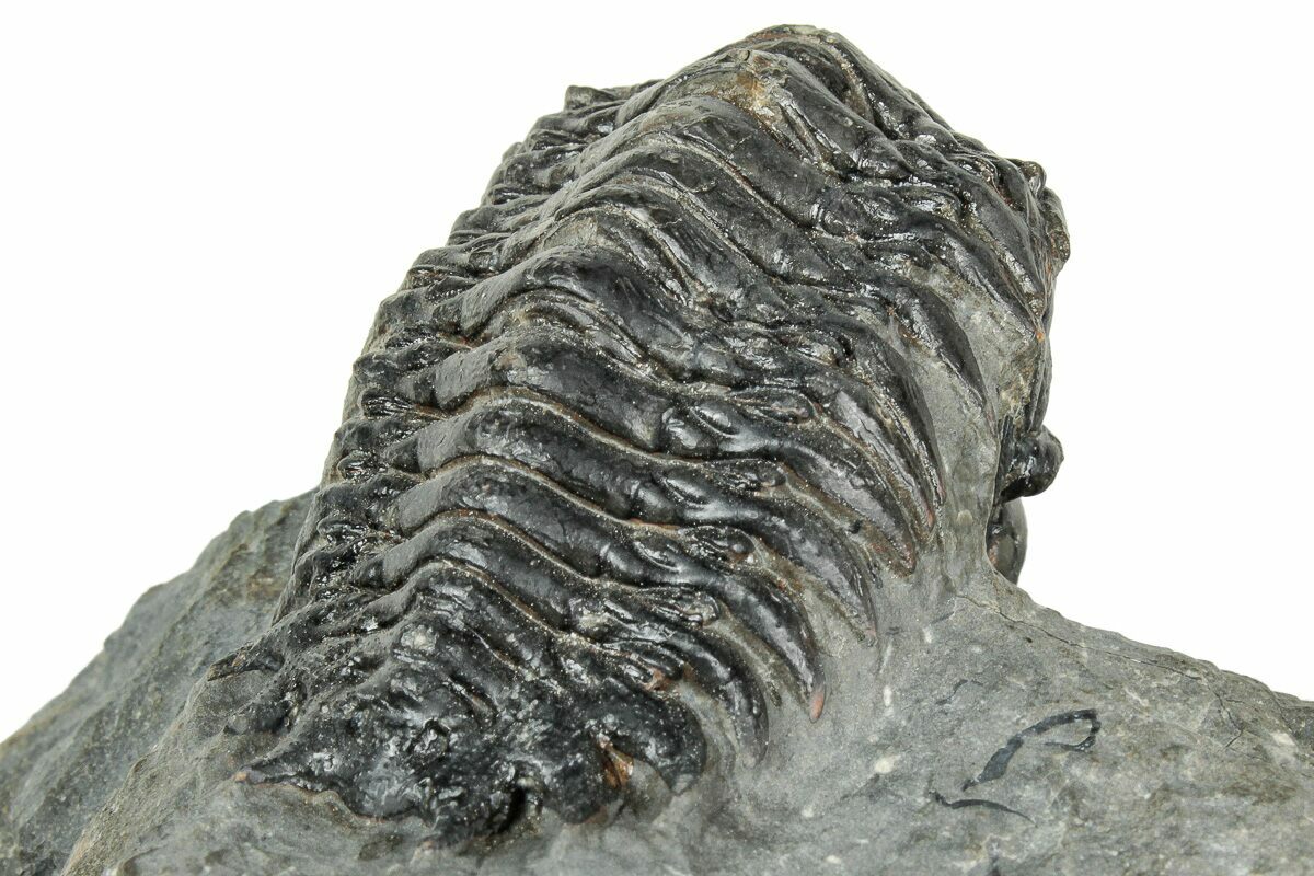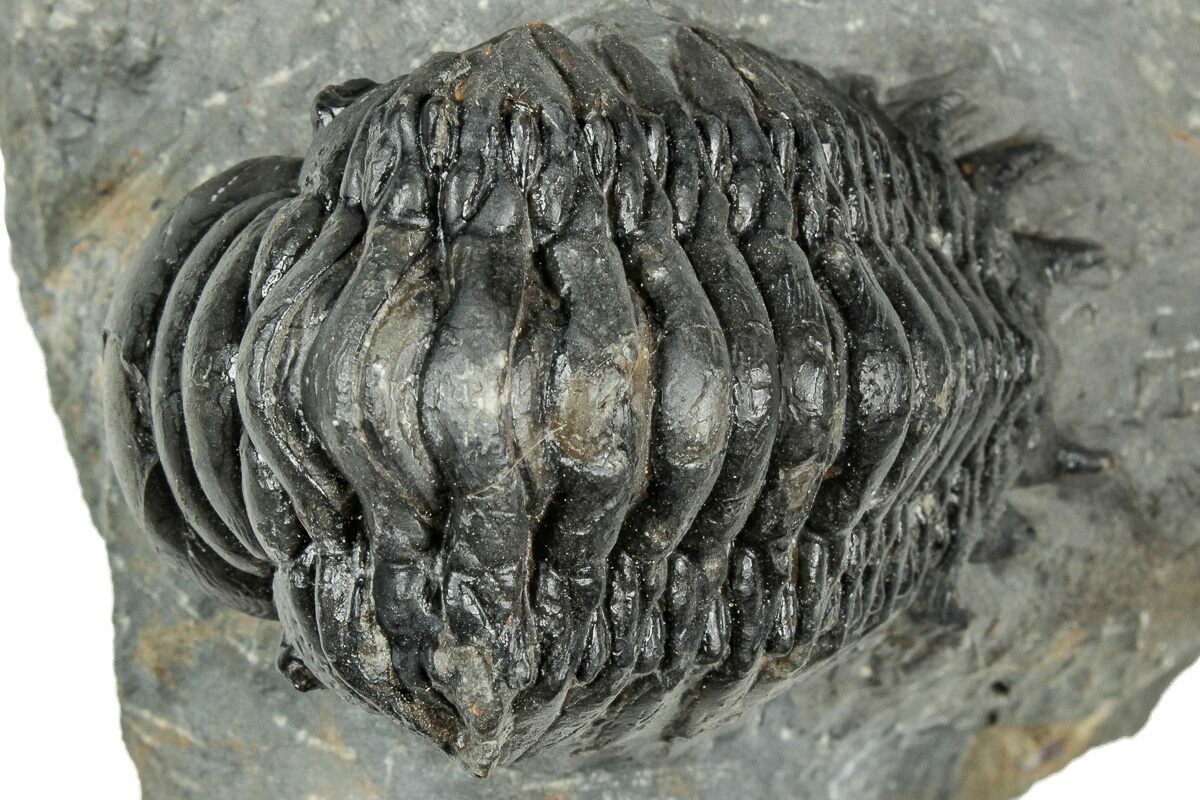 This is a detailed, 2.5" long, trilobite (Crotalocephalina gibbus) quarried from the Lhandar Formation near Atchana, Morocco. It is nicely inflated and has been prepared from the surrounding limestone so that it looks like it is ready to crawl off of the rock. It only has about 1% shell restoration on top of the axis.