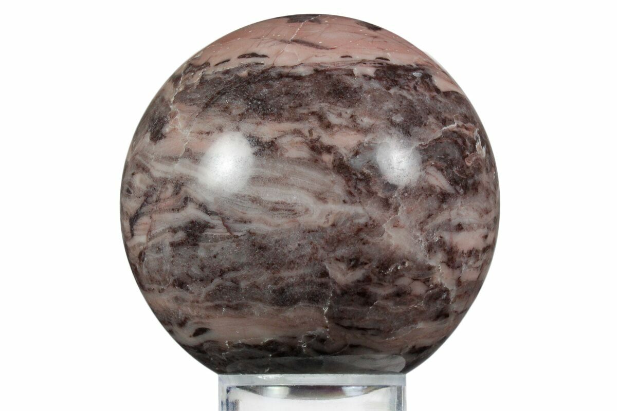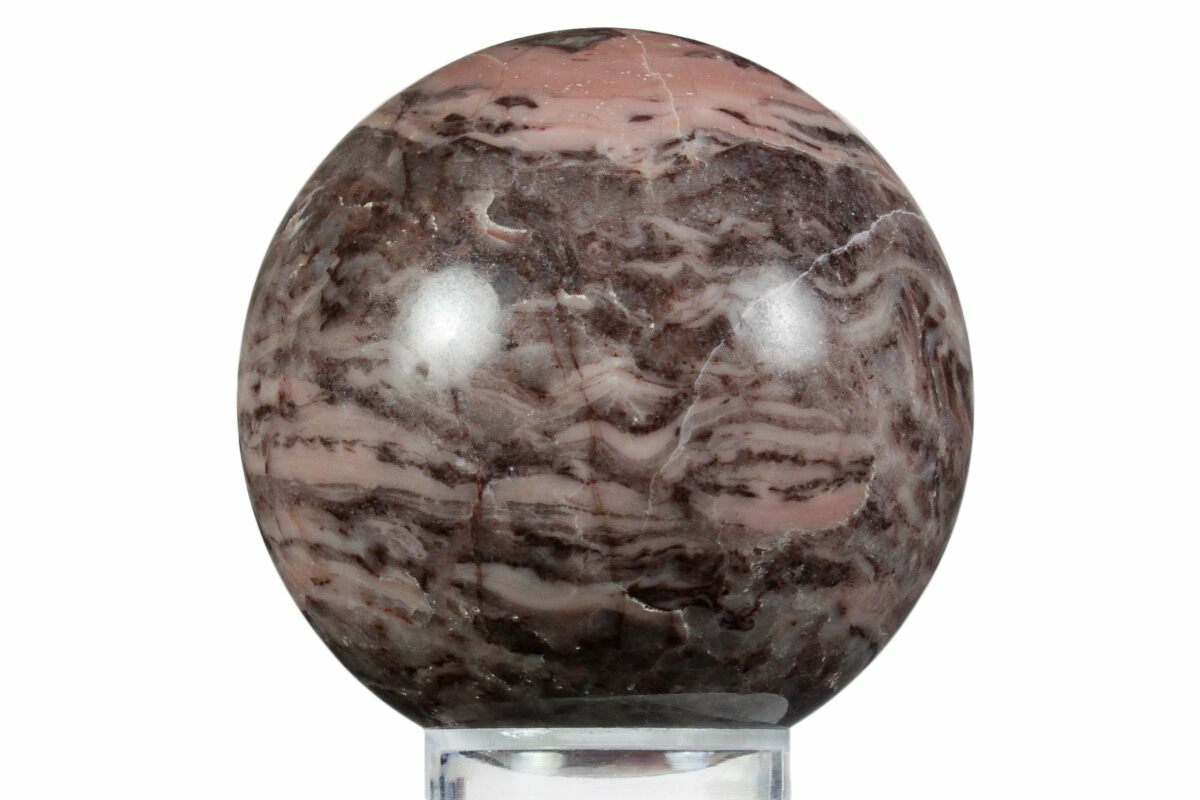 This is an interesting 2.5" wide polished sphere of richly-colored Kona dolomite, a 2 billion year old stromatolite. It comes with an acrylic ring stand for display.