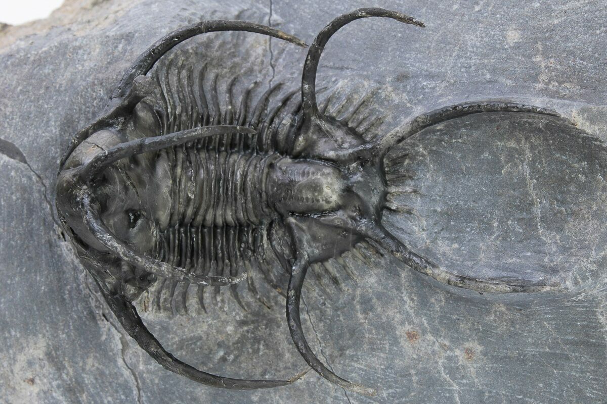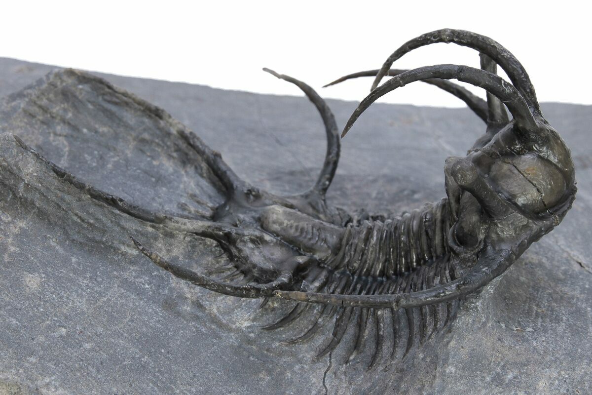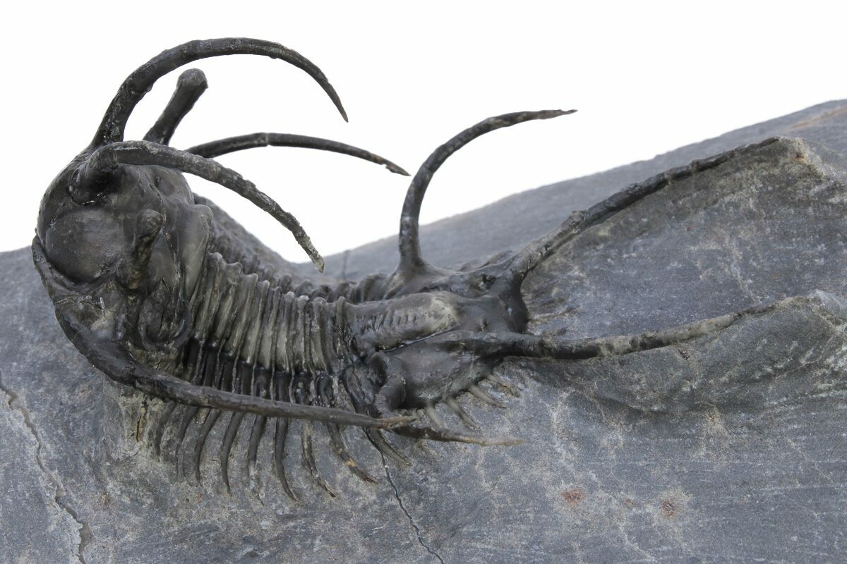 Now this is one alien looking trilobite, it's almost hard to imagine that it was once alive inhabiting our oceans. It's a Ceratarges ziregensis from the Middle Devonian limestone of Morocco. One can imagine that the large spines may have served as defensive protection against fish that had just begun to develop hardened jaws and likely had trilobites on the dinner menu.