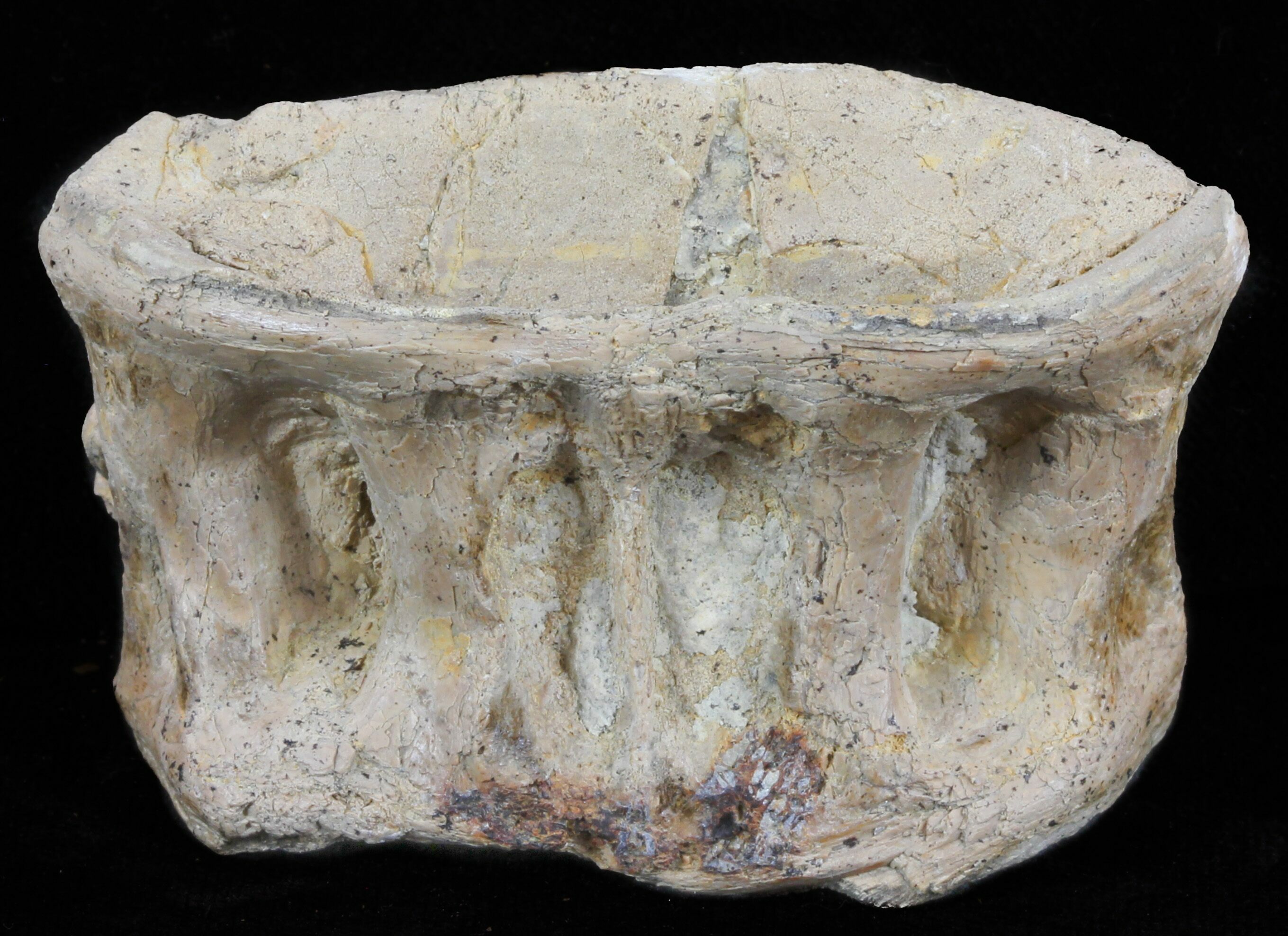 This is a fossil Xiphactinus audax vertebra from the Smoky Hill Chalk in Gove County, Kansas.