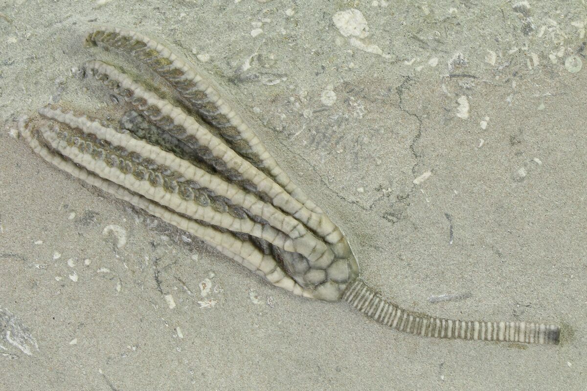 Crinoid: 2.6" long (including stem), Entire specimen: 3.1 x 2.4"