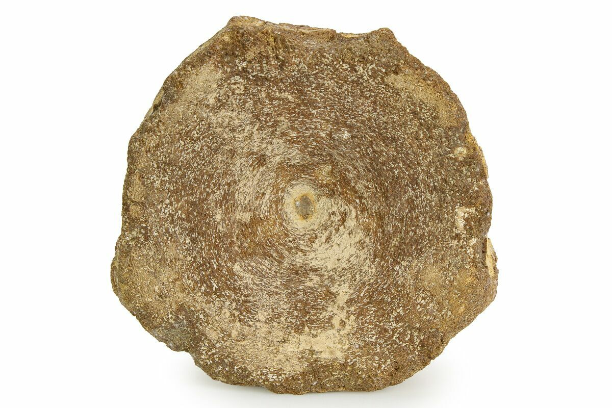 This is a 2.6" wide ichthyosaur (Brachypterigus cf. extremis) vertebra centrum from a Jurassic-aged deposit in Abingdon, England. It's Upper Jurassic in age, or approximately 154 million years old.