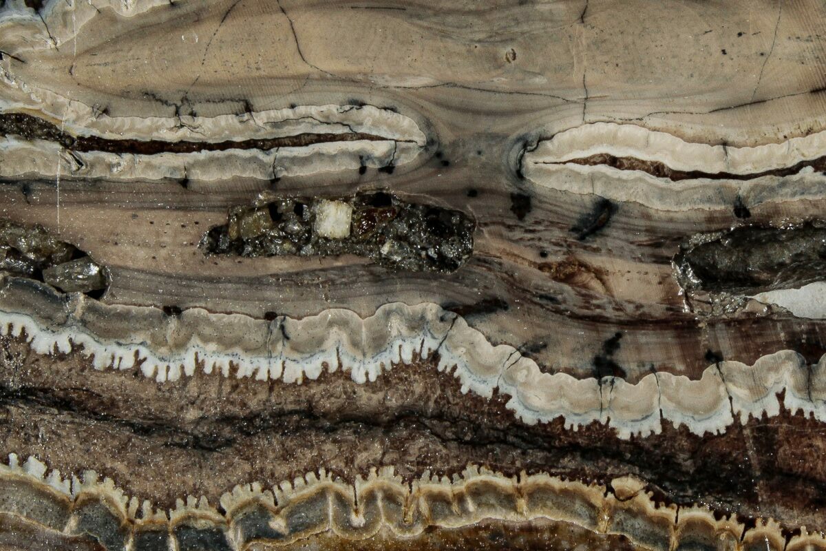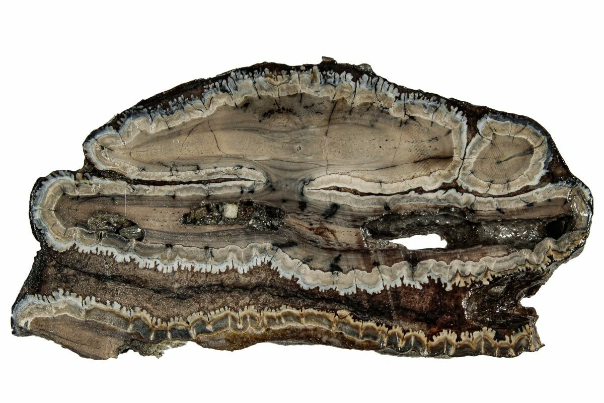 This is a interesting, cross-sectional slice of a Columbia Mammoth (Mammuthus columbi) molar collected from the coastal region of South Carolina. It comes with a riker mount display case.