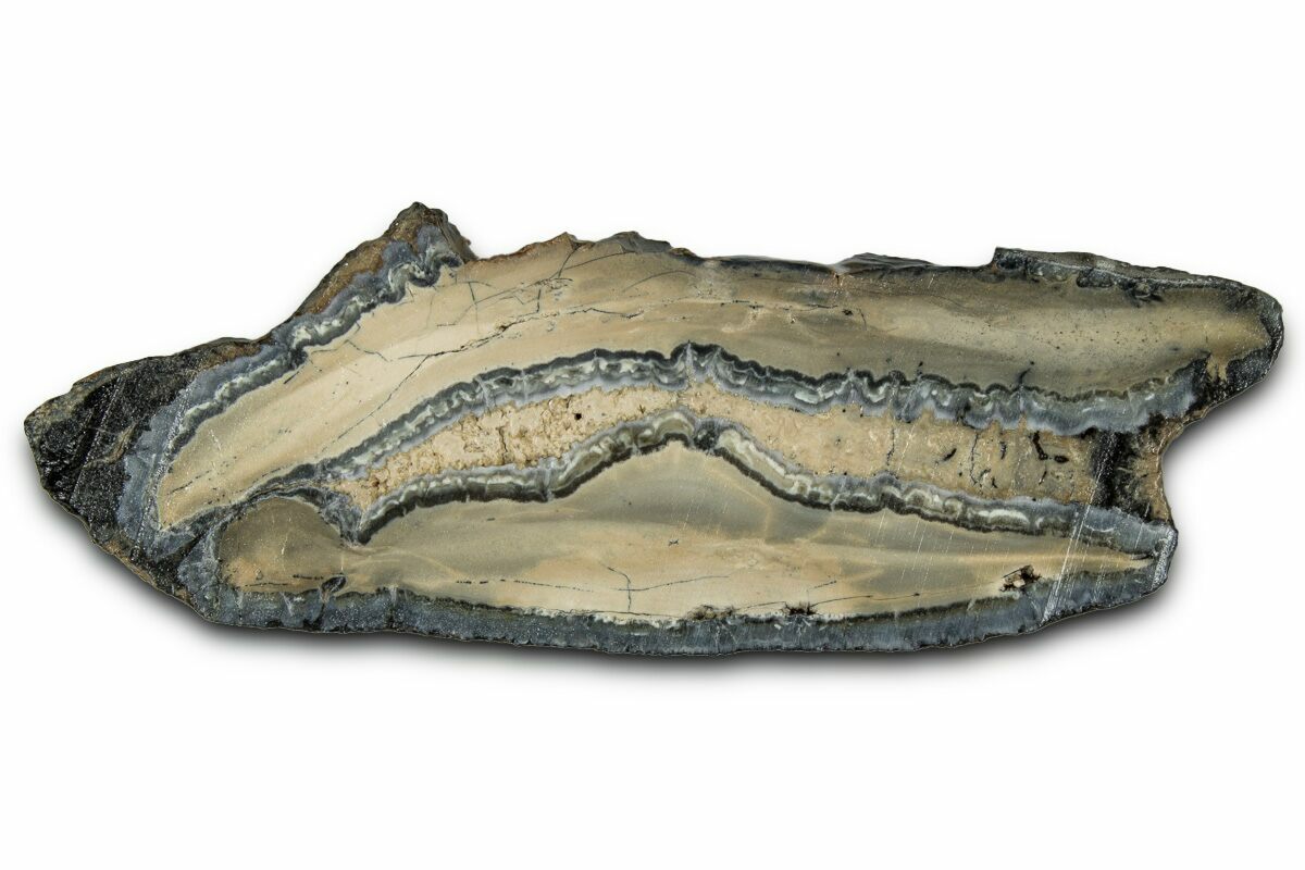 This is a interesting, cross-sectional slice of a Columbia Mammoth (Mammuthus columbi) molar collected from the coastal region of South Carolina. It comes with a riker mount display case.