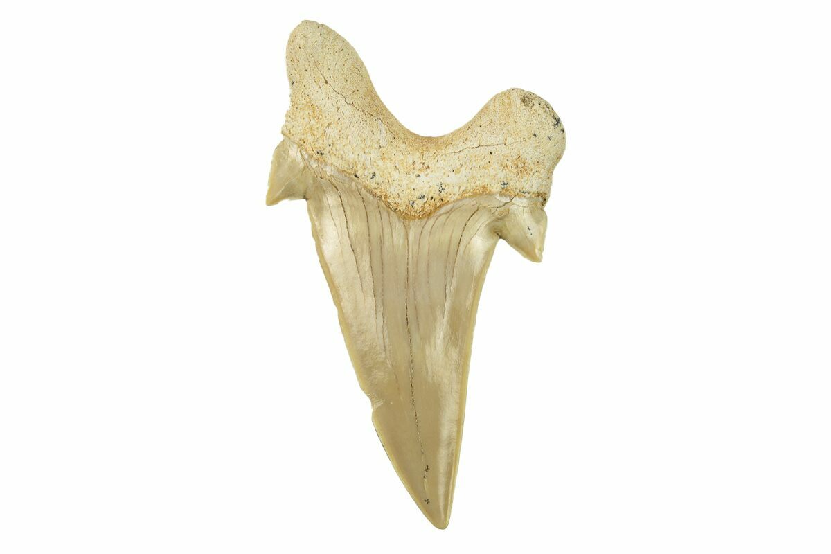 Otodus is an extinct mackerel (Lamniformes) shark that lived during the Eocene, approximately 54 million years ago. This is the same family of sharks that includes the Great White and the largest shark ever known, the Megalodon. These teeth are collected during phosphate mining operations near Khouribga, Morocco. While Otodus teeth are common fossils at these mines, large, good quality specimens are hard to find since they are often destroyed by the mining equipment.