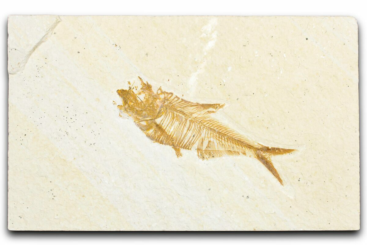 This is a detailed, 2.7" long fossil fish (Diplomystus dentatus) from the famous Green River Formation. It comes from our own Fossil Lake Safari quarry just outside of Kemmerer, Wyoming.