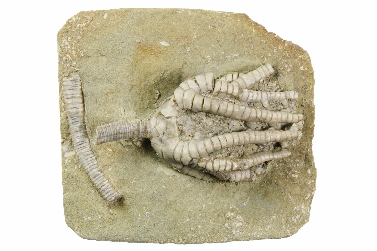 Crinoid: 2.7" long (including stem), Entire specimen: 3.4 x 3.1"