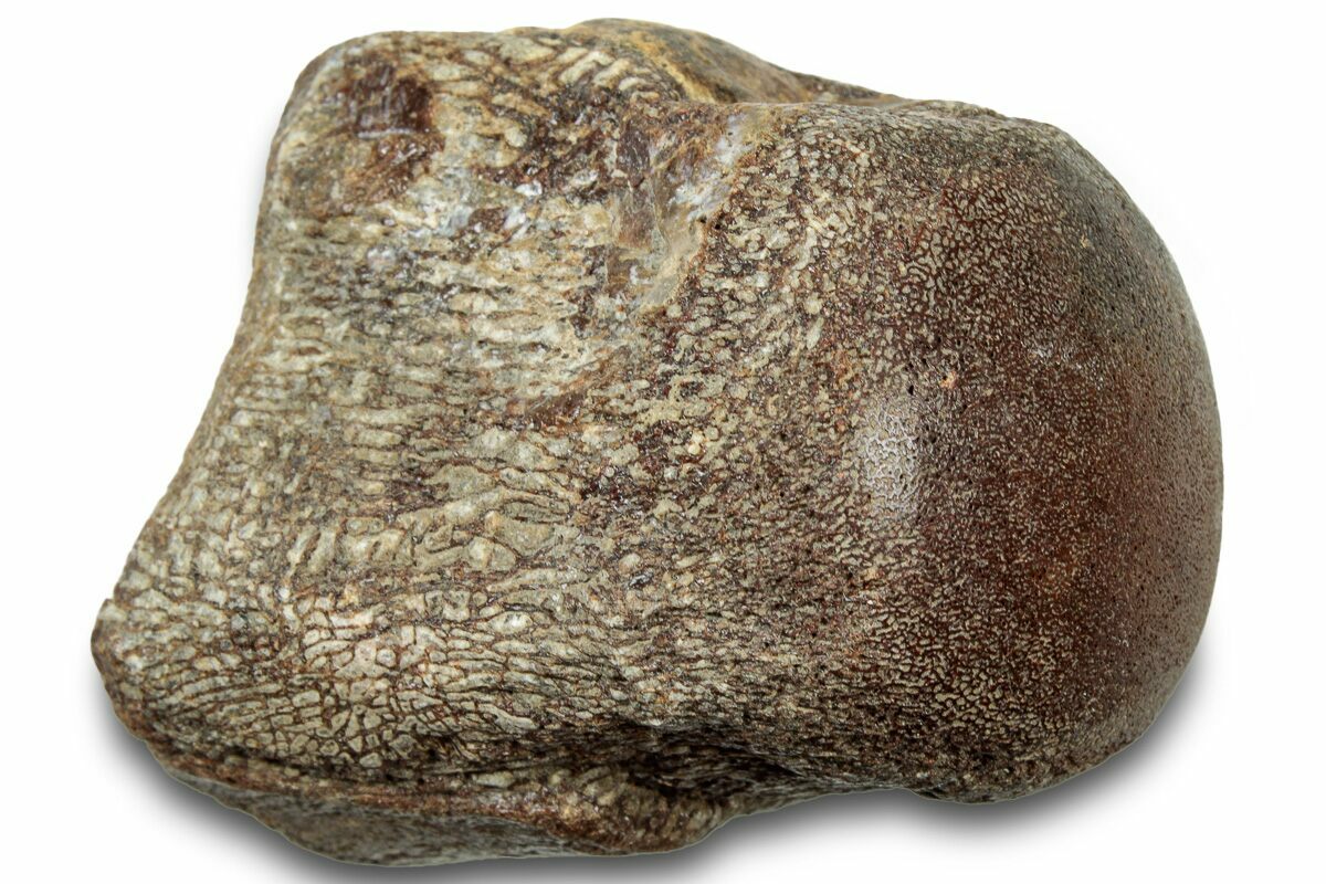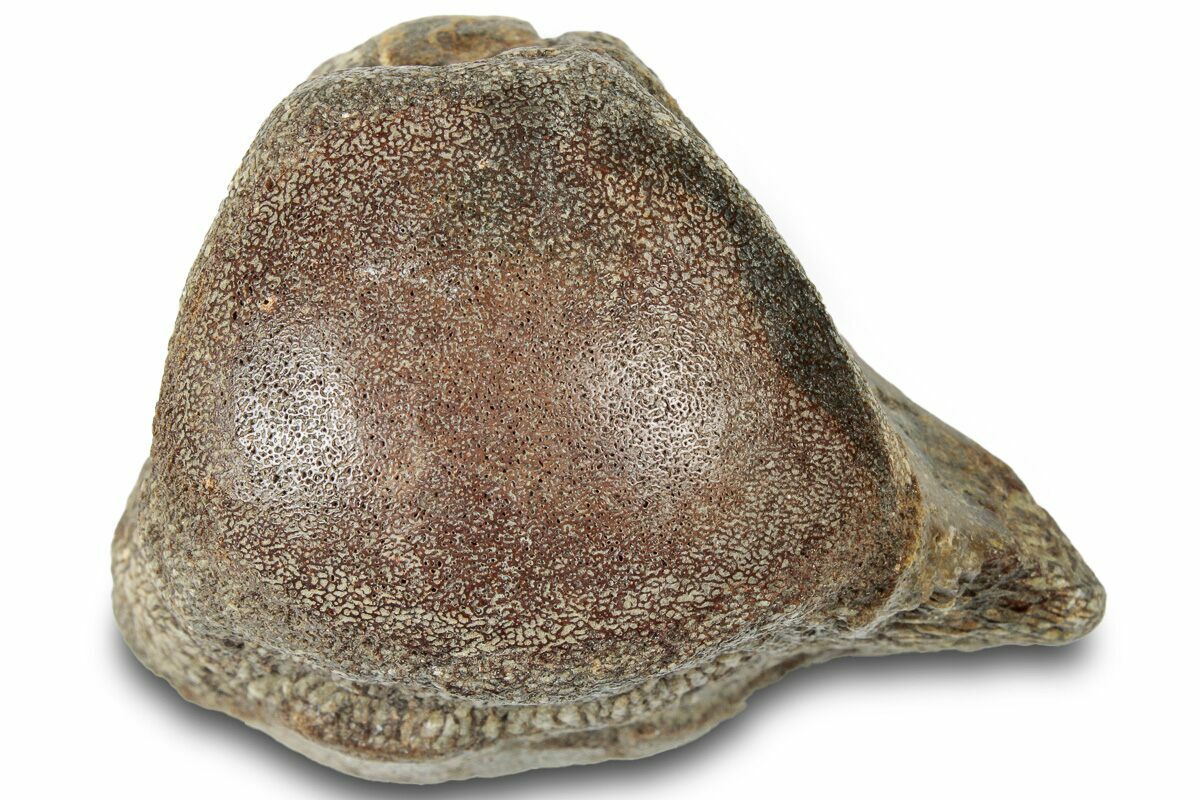 This is a 2.7" wide vertebra from a mosasaur collected from the Upper Cretaceous-aged (Campanian Stage) Ozan Formation in Fannin County, Texas. There are several species of mosasaurs known from this formation, so identifying an isolated vertebra down to a genus or species is difficult.