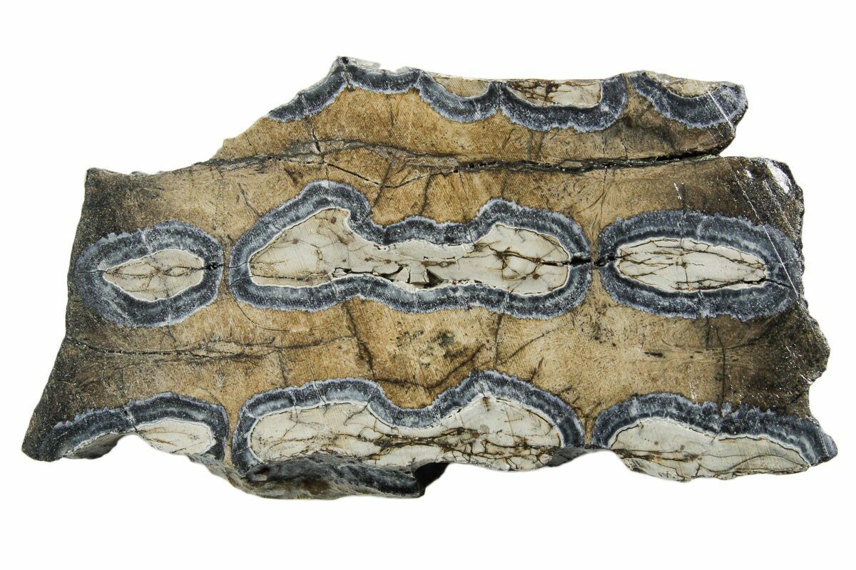 This is a interesting, cross-sectional slice of a Columbia Mammoth (Mammuthus columbi) molar collected from the coastal region of South Carolina. It comes with a riker mount display case.