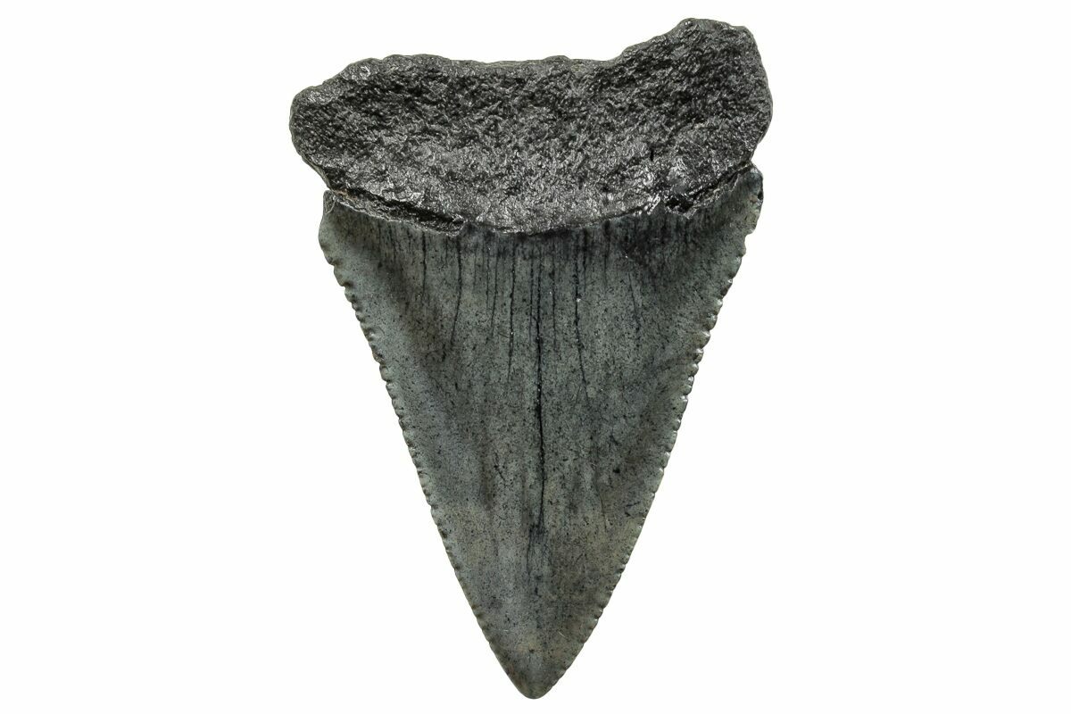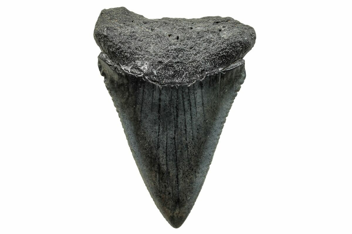 This is a very large, 2.71" long serrated fossil great white shark (Carcharodon carcharias) tooth. It comes from the Hawthorn Formation in South Carolina which is Pliocene in age. These fossil great white teeth are much rarer than the megalodon teeth which they are found alongside.