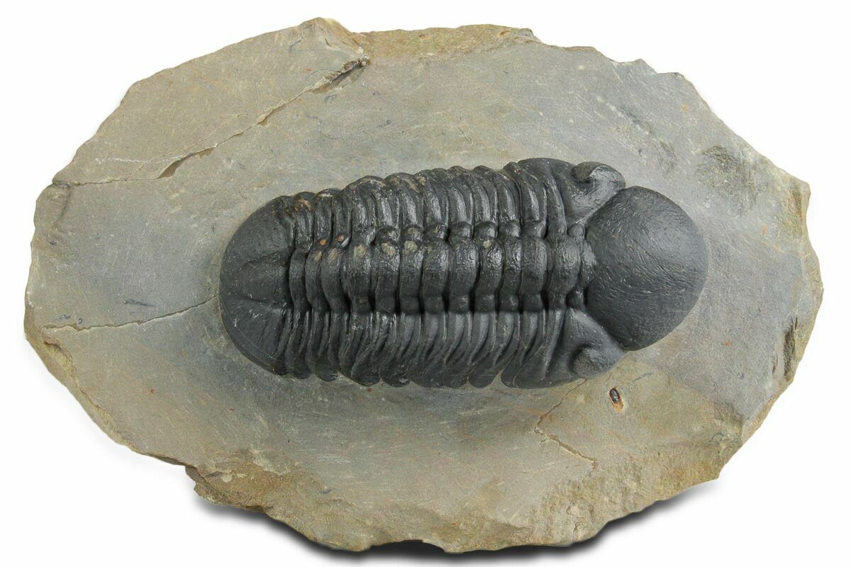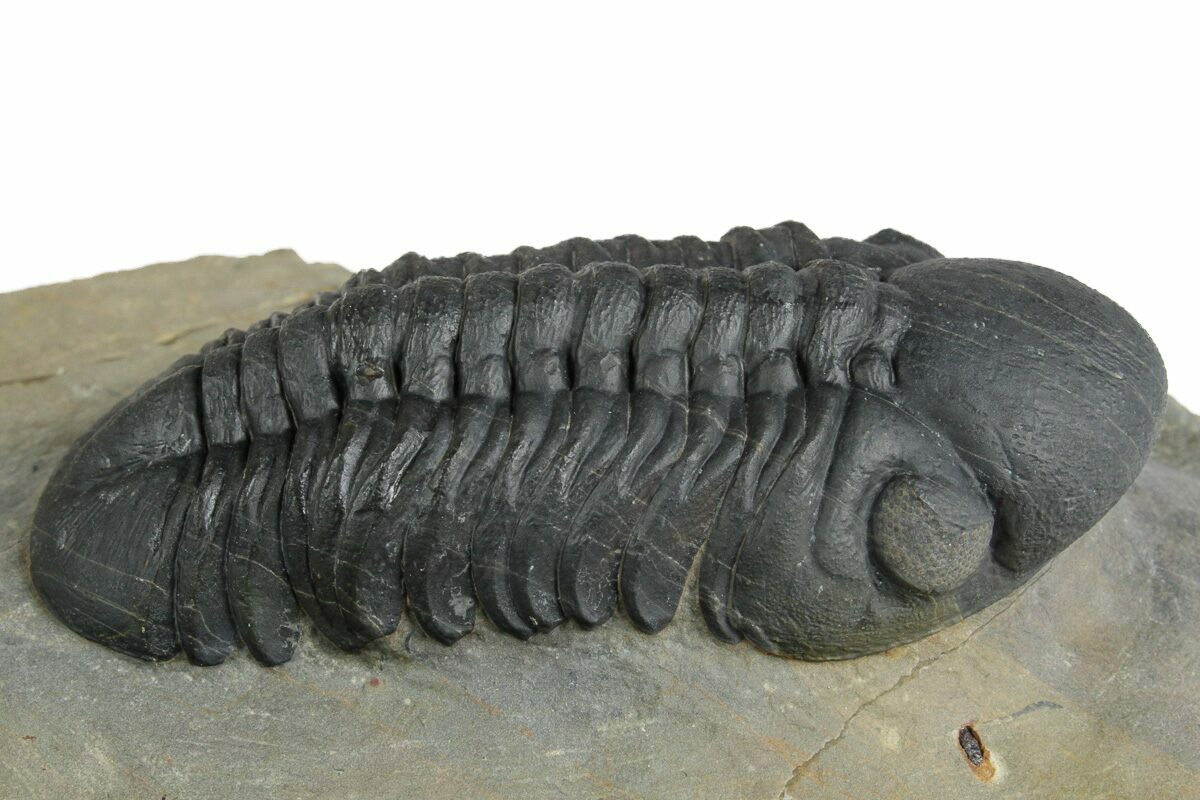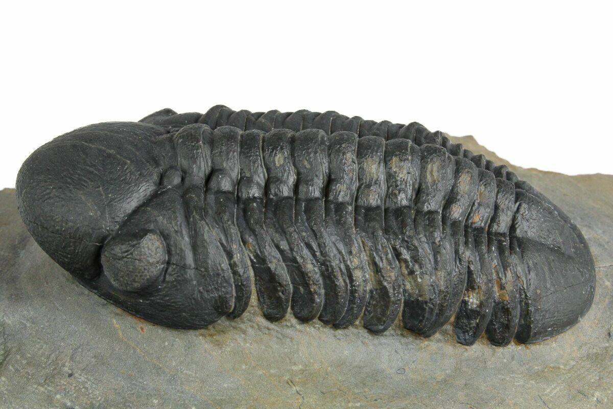This is a nice, 2.75" long, Reedops trilobite collected near Atchana, Morocco. It has a lot of surface detail including, visible, preserved eye facets in its eyes. It's been prepared to remove the surrounding limestone so that it looks like it's ready to crawl off the rock.