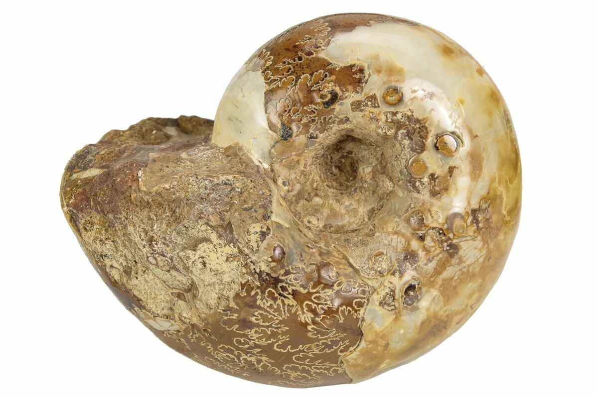 Ammonites were ancient marine cephalopods, similar to today's squids and octopuses, but with a defining feature: their distinctive, tightly coiled spiral shells. These shells, resembling those of modern nautiluses, served as both a protective home and a buoyancy aid, allowing ammonites to navigate the prehistoric seas with ease. First emerging around 240 million years ago in the Triassic Period, ammonites thrived for over 175 million years, adapting through numerous forms and sizes. As predatory creatures, they likely fed on smaller marine organisms, using their tentacles to capture prey. However, their long reign came to an end 65 million years ago at the close of the Cretaceous, coinciding with the mass extinction event that also eliminated the dinosaurs.
