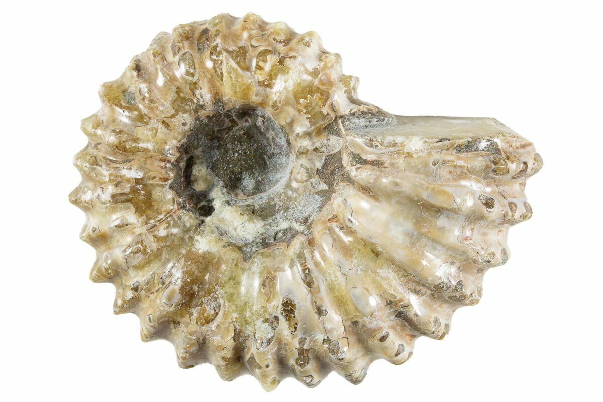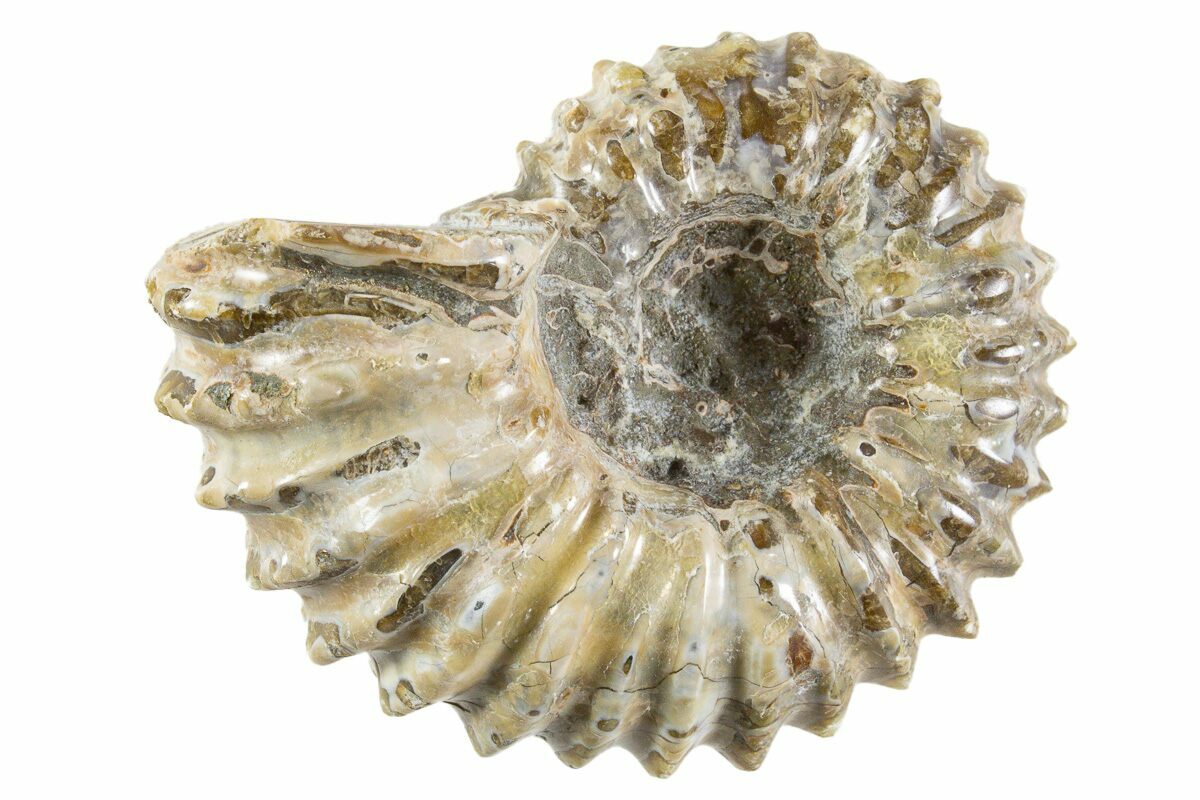 Ammonites were ancient marine cephalopods, similar to today's squids and octopuses, but with a defining feature: their distinctive, tightly coiled spiral shells. These shells, resembling those of modern nautiluses, served as both a protective home and a buoyancy aid, allowing ammonites to navigate the prehistoric seas with ease. First emerging around 240 million years ago in the Triassic Period, ammonites thrived for over 175 million years, adapting through numerous forms and sizes. As predatory creatures, they likely fed on smaller marine organisms, using their tentacles to capture prey. However, their long reign came to an end 65 million years ago at the close of the Cretaceous, coinciding with the mass extinction event that also eliminated the dinosaurs.