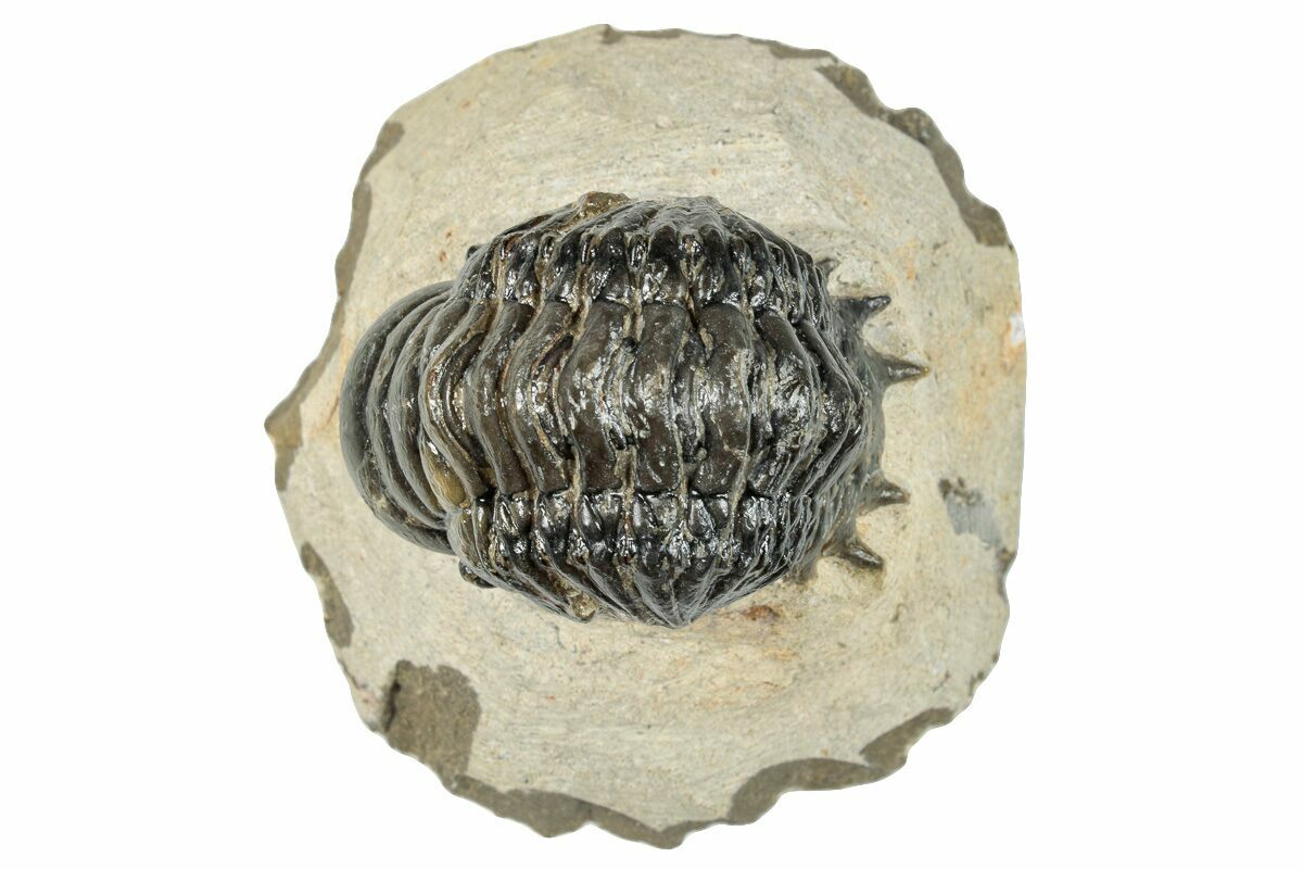This is a detailed, 2.8" long, trilobite (Crotalocephalina gibbus) quarried from the Lhandar Formation near Atchana, Morocco. It is nicely inflated and has been prepared from the surrounding limestone so that it looks like it is ready to crawl off of the rock.