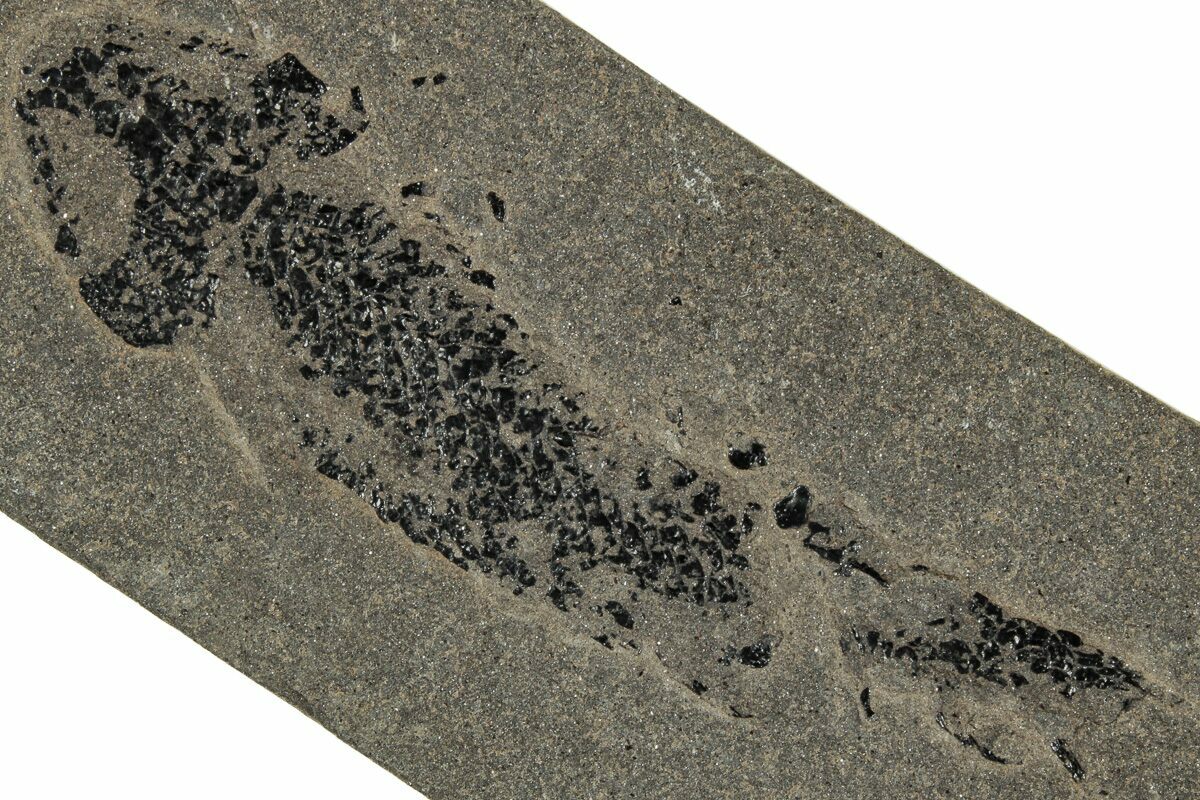 This is a 2.8" long specimen of the Devonian "Lobed-Fin" fish, Osteolepis panderi. It was collected from the Middle Devonian-aged Old Red Sandstone in Caithness, Scotland. It comes with an acrylic display stand.