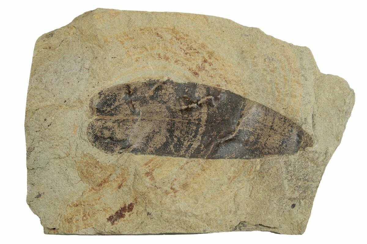 This is a 2.8" long fern (Macroneuropteris scheuchzeri) fossil, collected from the Pennsylvanian-aged Cherokee Series of Tennessee, Illinois.