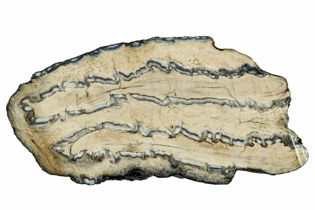 This is a interesting, cross-sectional slice of a Columbia Mammoth (Mammuthus columbi) molar collected from the coastal region of South Carolina. It comes with a riker mount display case.