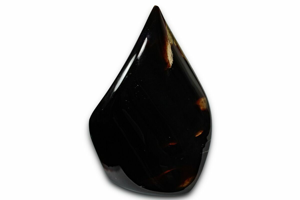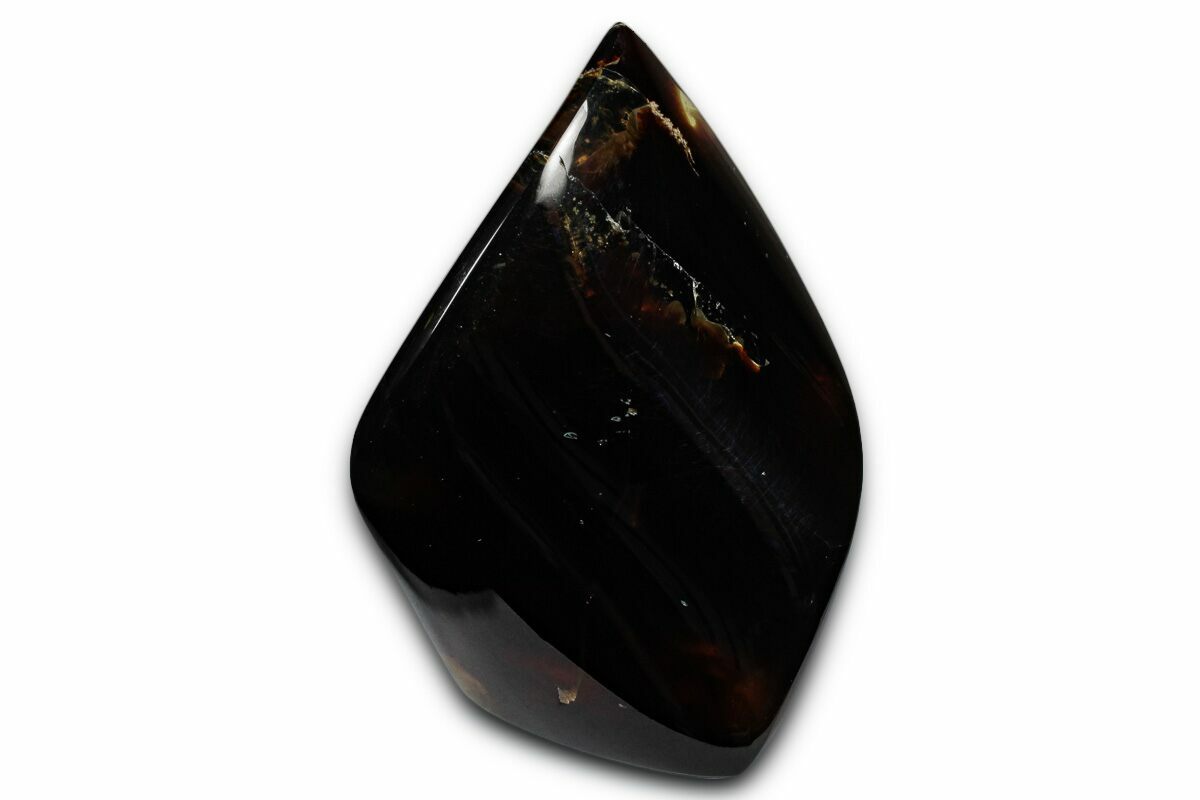 This is a 2.85" tall piece of "blue" amber collected from coal deposits near West Kalimantan, Indonesia. It has been shaped in the a "flame" sculpture and the base is cut flat so that it stands up nicely on a flat surface.