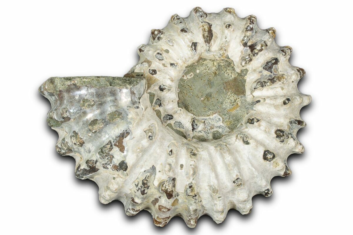 Ammonites were ancient marine cephalopods, similar to today's squids and octopuses, but with a defining feature: their distinctive, tightly coiled spiral shells. These shells, resembling those of modern nautiluses, served as both a protective home and a buoyancy aid, allowing ammonites to navigate the prehistoric seas with ease. First emerging around 240 million years ago in the Triassic Period, ammonites thrived for over 175 million years, adapting through numerous forms and sizes. As predatory creatures, they likely fed on smaller marine organisms, using their tentacles to capture prey. However, their long reign came to an end 65 million years ago at the close of the Cretaceous, coinciding with the mass extinction event that also eliminated the dinosaurs.