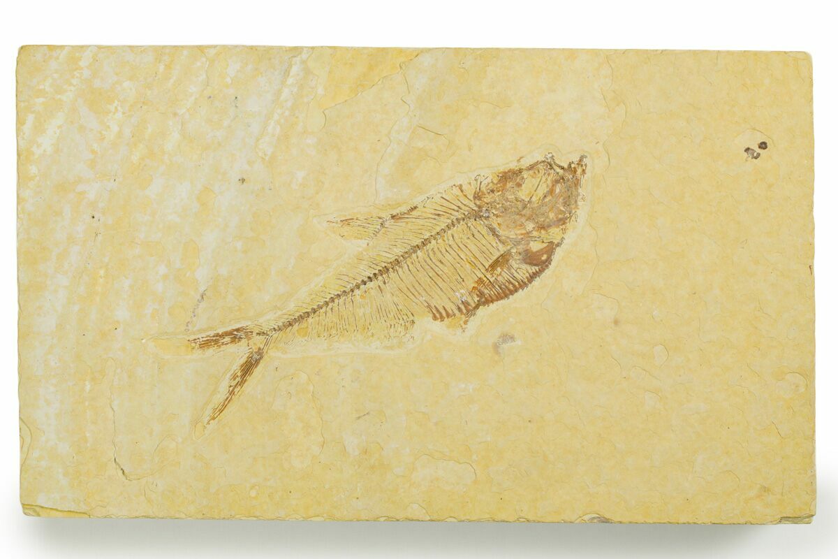 This is a detailed, 2.9" long fossil fish (Diplomystus dentatus) from the famous Green River Formation. It comes from a specific bedding plane in our own Fossil Lake Safari quarry that we refer to as the mud layer. It's a volcanic ash layer which contains a mass mortality of different fish.