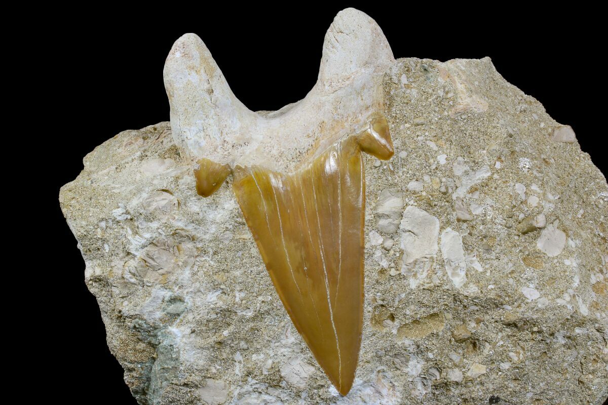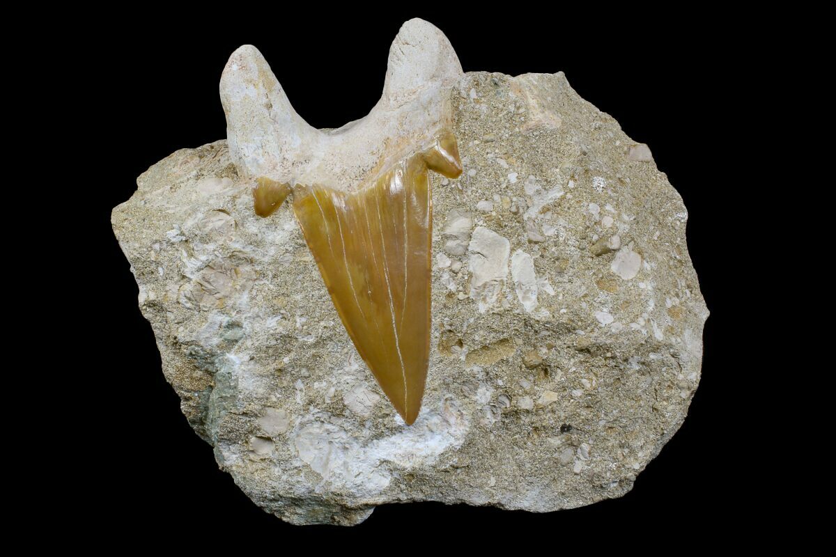 Otodus is an extinct mackerel (Lamniformes) shark that lived during the Eocene, approximately 54 million years ago. This is the same family of sharks that includes the Great White and the largest shark ever known, the Megalodon. These teeth are collected during phosphate mining operations near Khouribga, Morocco. While Otodus teeth are common fossils at these mines, large, good quality specimens are hard to find since they are often destroyed by the mining equipment.