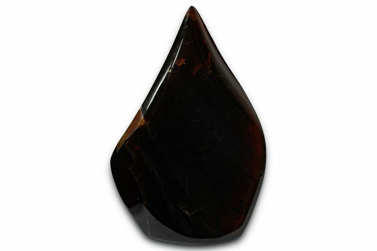 This is a 2.9" tall piece of "blue" amber collected from coal deposits near West Kalimantan, Indonesia. It has been shaped in the a "flame" sculpture and the base is cut flat so that it stands up nicely on a flat surface.