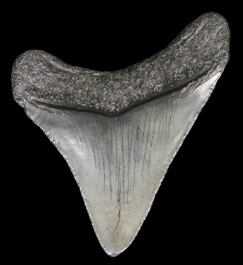 Megalodon had a cosmopolitan (global) distribution and its giant teeth can be found in deposits throughout the world. Some are collected on land in phosphate deposits, while many are collected from rivers and coastlines after eroding out of the rocks. This contributes to the water-worn, polished appearance of many teeth.
