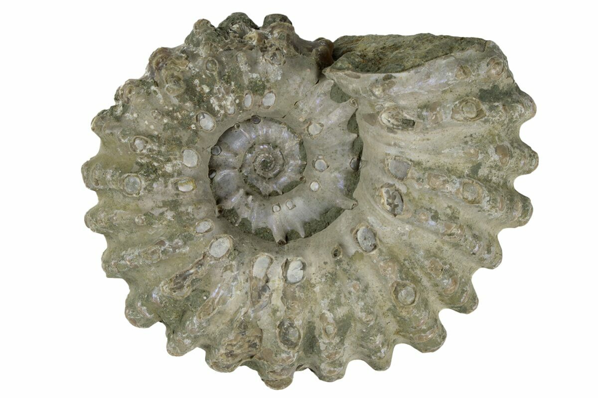 Ammonites were ancient marine cephalopods, similar to today's squids and octopuses, but with a defining feature: their distinctive, tightly coiled spiral shells. These shells, resembling those of modern nautiluses, served as both a protective home and a buoyancy aid, allowing ammonites to navigate the prehistoric seas with ease. First emerging around 240 million years ago in the Triassic Period, ammonites thrived for over 175 million years, adapting through numerous forms and sizes. As predatory creatures, they likely fed on smaller marine organisms, using their tentacles to capture prey. However, their long reign came to an end 65 million years ago at the close of the Cretaceous, coinciding with the mass extinction event that also eliminated the dinosaurs.